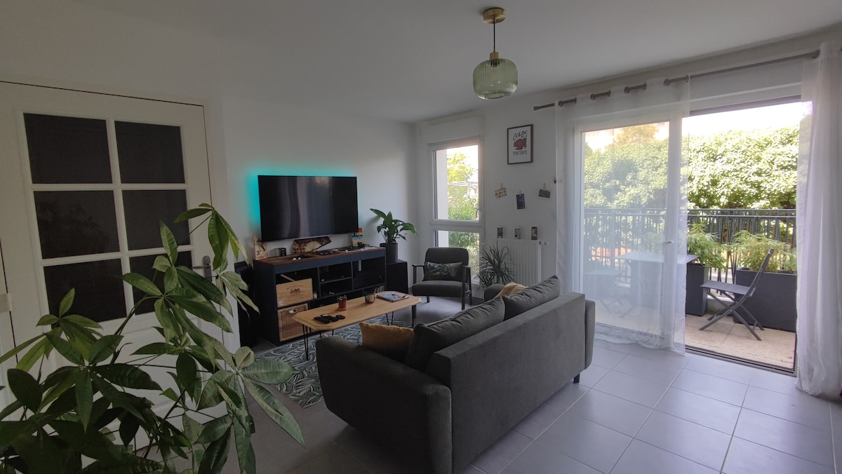 Casa en una zona tranquila, cerca de todos los servicios, restaurantes, cine, sala de escalada, guinguette , Terra botanica, Arena Loire.... Cerca del circuito del Loira en bicicleta.