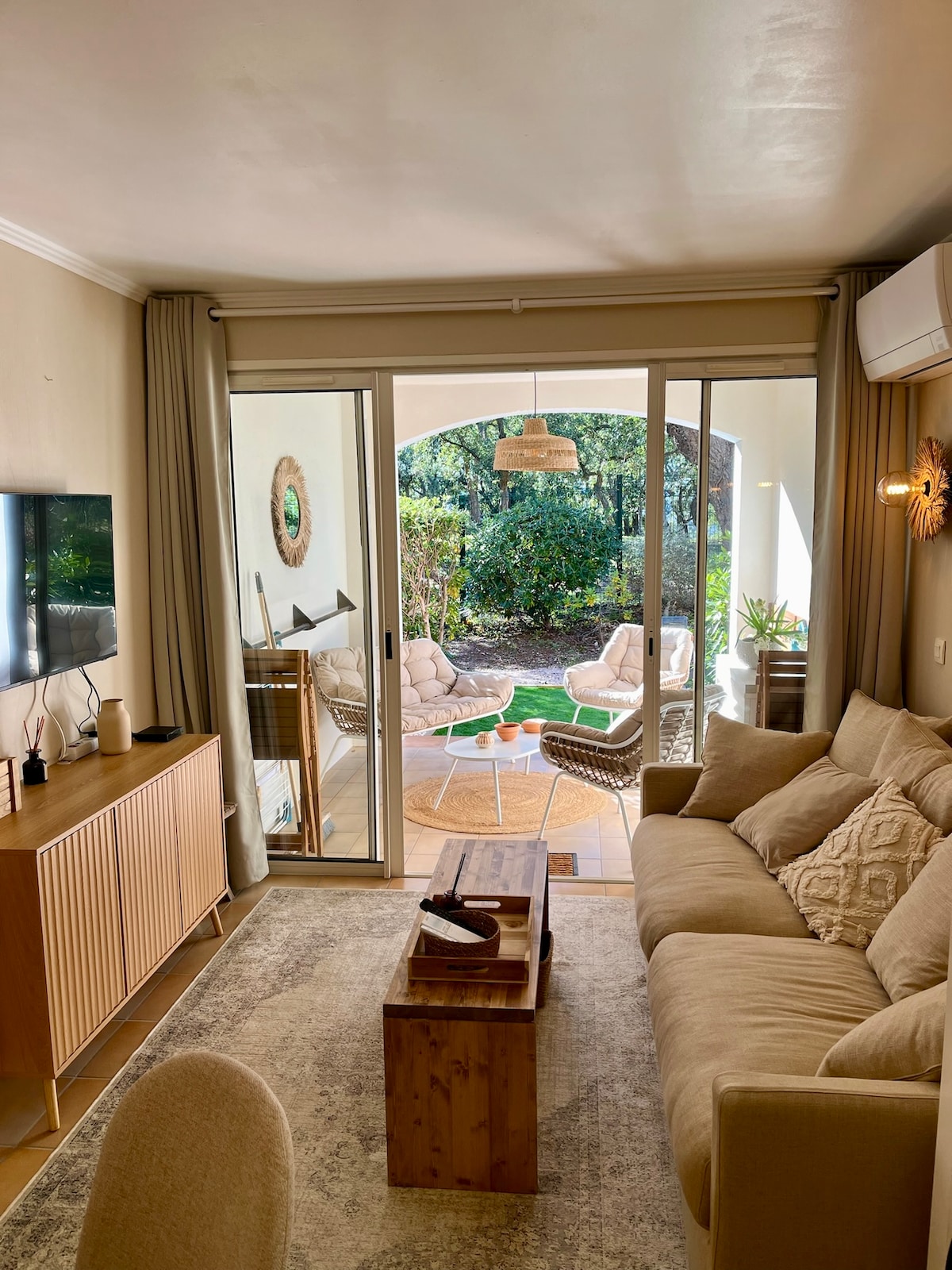 Charmant appartement rénové avec terrasse sur les canaux Entièrement rénové en 2025, ce cocon vous accueille avec une entrée équipée d’un dressing, une salle d’eau et une pièce de vie lumineuse avec cuisine ouverte et coin nuit confortable. Profitez d’une belle terrasse donnant directement sur les canaux, idéale pour un moment de détente au fil de l’eau. Appartement climatisé, accès plage. Navettes en direction de Saint-Tropez / Sainte-Maxime à proximité.