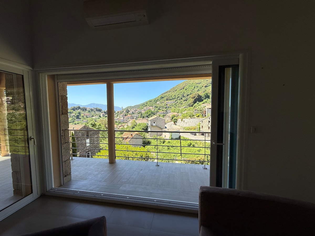 Magnífico apartamento nuevo situado en la planta baja de una casa unifamiliar, tranquilo a la entrada del pueblo de Levie. hay un gran baño con ducha a ras de suelo , un lavabo sobre una tabla de castaño. La cocina está abierta a una gran sala de estar con sofá y TV. Una gran terraza cubierta con zona de comedor es accesible desde la cocina. Hay acceso a nivel del suelo al jardín. El apartamento es muy funcional y agradable. Estufa de pellets y aire acondicionado reversible.