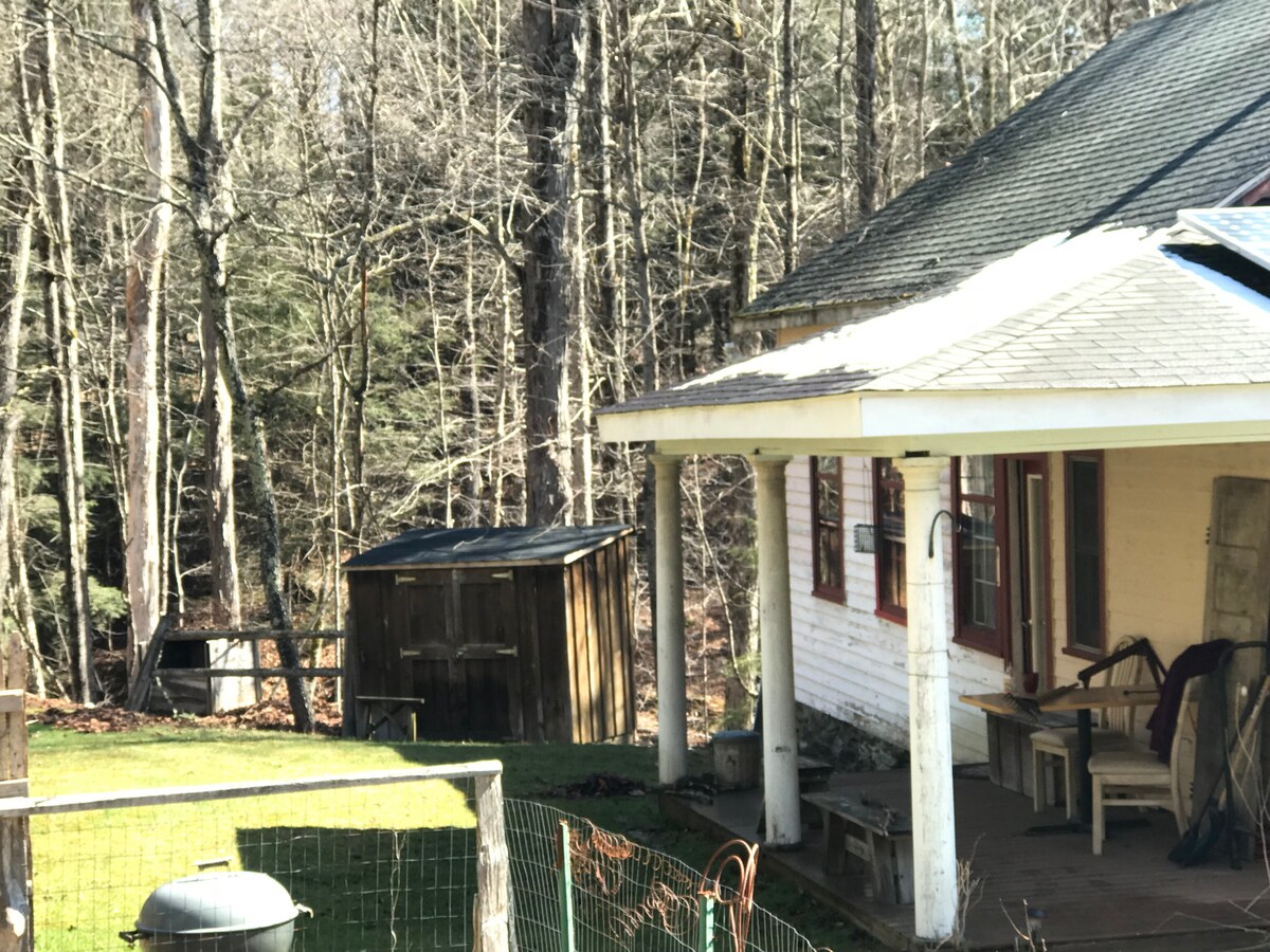 Renovated One room schoolhouse nestled in the Catskill Mountains. Outfitted with solar panels, an indoor full bathroom and an outdoor shower with a private refreshing stream in the backyard. Walk out the the door for wonderful hiking. Close to town and a micro brewery at the end of the road! Relax and be creative in the woods! Full kitchen! With wood stove and refrigerator (no microwave at the moment). Full bathroom with claw foot tub.
