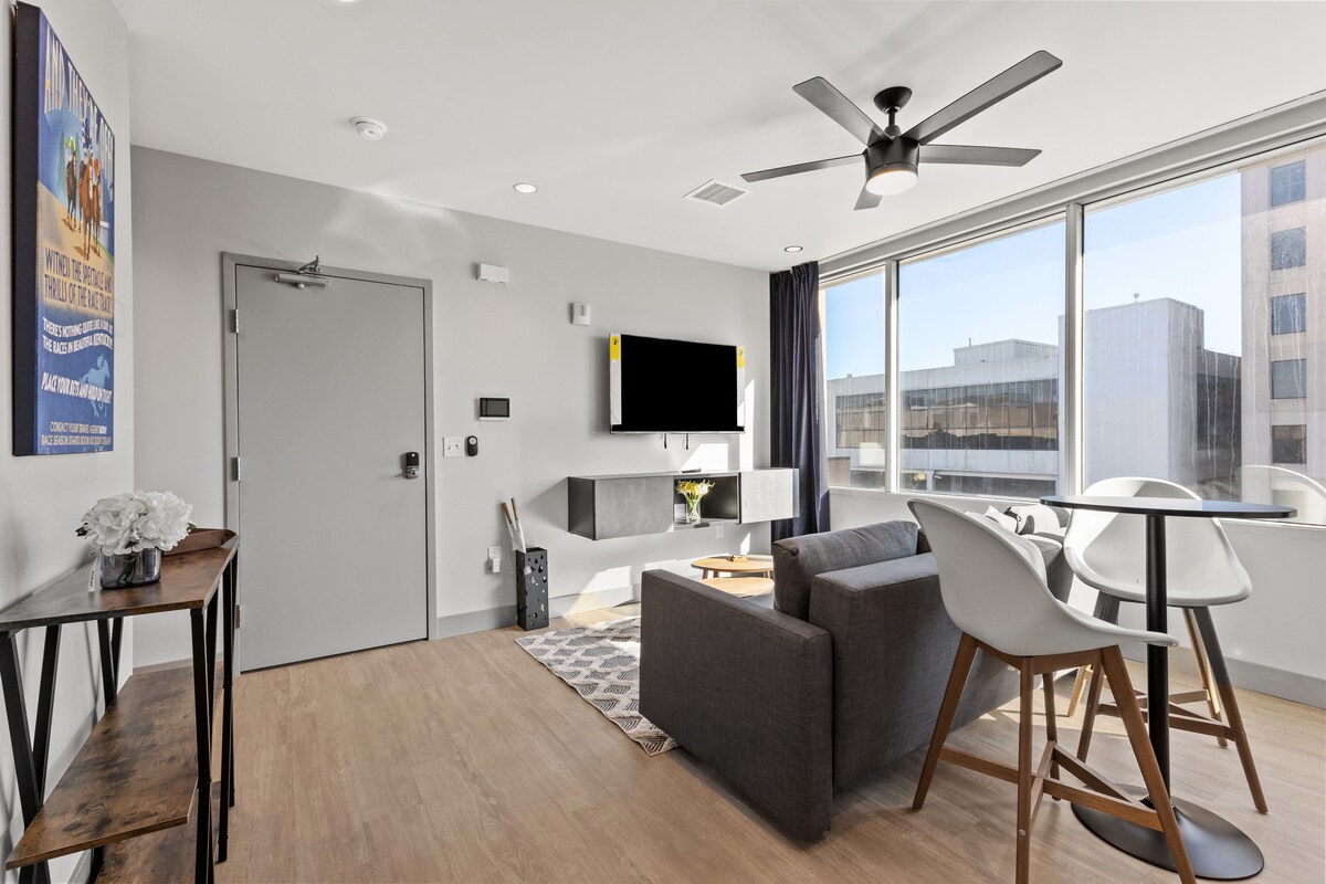 ¡Con vistas inigualables al centro de Lexington, sumérgete en la vida como un habitante local en 175 LEX! El apartamento 501 ha sido recientemente renovado con todas las comodidades modernas que un huésped desearía al visitar el centro de KY. Este apartamento-hotel, situado en el quinto piso, cuenta con un dormitorio con cama tamaño queen, sala de estar con sofá cama, cocina completa con encimera de cuarzo y lavadora/secadora privada. ¡A poca distancia a pie de Rupp Arena, restaurantes locales como Carson's, cafeterías, tiendas minoristas y mucho más!