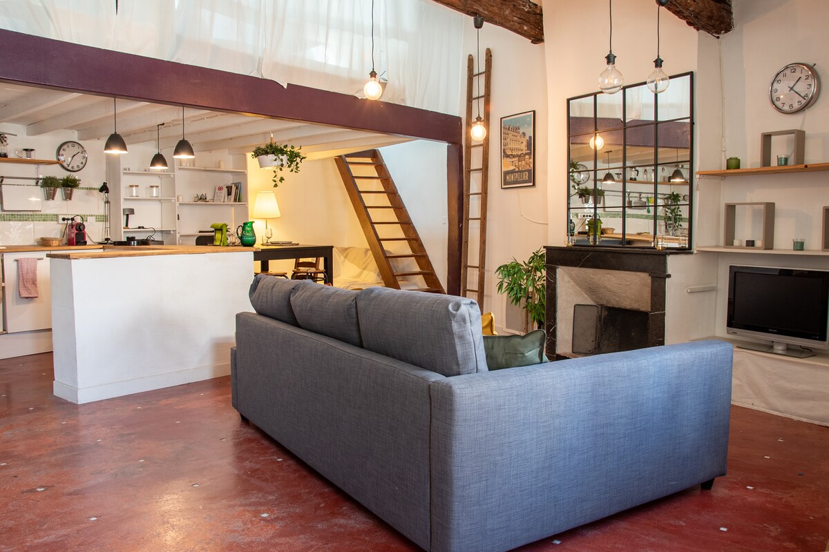 ¡Bienvenido a casa! Este bonito loft situado en el corazón del centro de la ciudad de Montpellier está ahí para hacerle descubrir el centro histórico, en medio de todo, mientras le hace sentir como en casa. Ubicado en el cuarto piso de un edificio protegido, la tranquilidad del apartamento y su encanto de lo antiguo renovado, lo convierten en un lugar acogedor y envolvente. El apartamento se encuentra a dos pasos de la famosa Place de la Comédie y a 5 minutos a pie de la estación de tren de St Roch, ¡para moverse solo a pie y disfrutar!