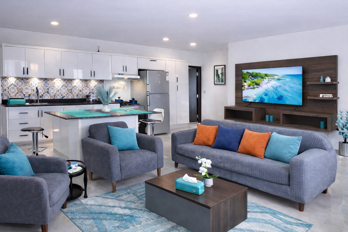 Este elegante lugar de estar está bien equipado con una cocina, un comedor y grandes balcones con vistas al mar desde la habitación. Estacionamiento gratuito en el hotel para alojar un máximo de 4 automóviles. • Seguridad 24/7 • Estacionamiento gratuito en el hotel para alojar un máximo de 4 automóviles. • Agua caliente/fría en funcionamiento - Wifi gratuito. • DSTV/Cable • Generador de respaldo disponible si se queda la luz.