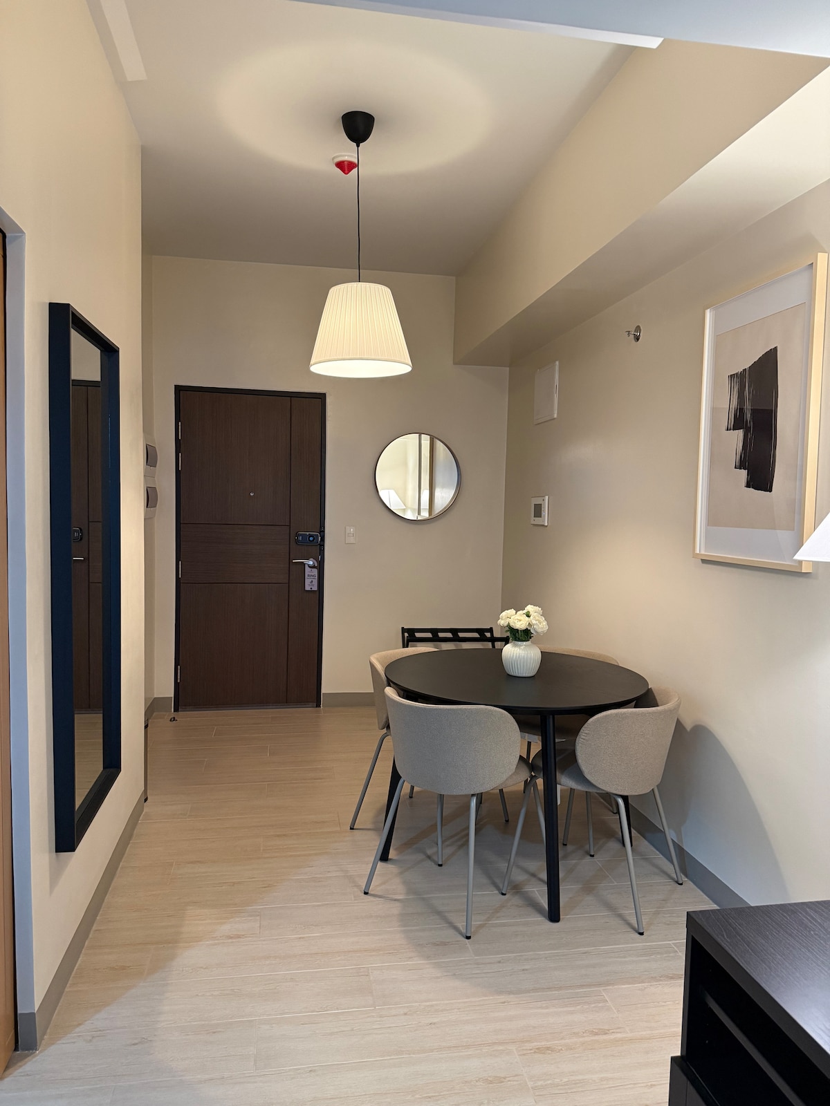 Escápate a este nuevo y elegante gran estudio ejecutivo convertible en condominio 1-BR, que combina perfectamente la comodidad, la comodidad y una ubicación privilegiada de Eastwood City. A pocos pasos del centro comercial Eastwood Mall, ¡tendrás todo al alcance de tu mano! Este espacio de diseño profesional es digno de Instagram, con muebles modernos y un ambiente acogedor. Relájate en la cama tamaño queen o en el sofá cama. Disfruta de un sinfín de entretenimiento con Smart TV (Netflix y Cignal Cable) y wifi rápido. Mantente fresco con dos aire acondicionado tipo split.
