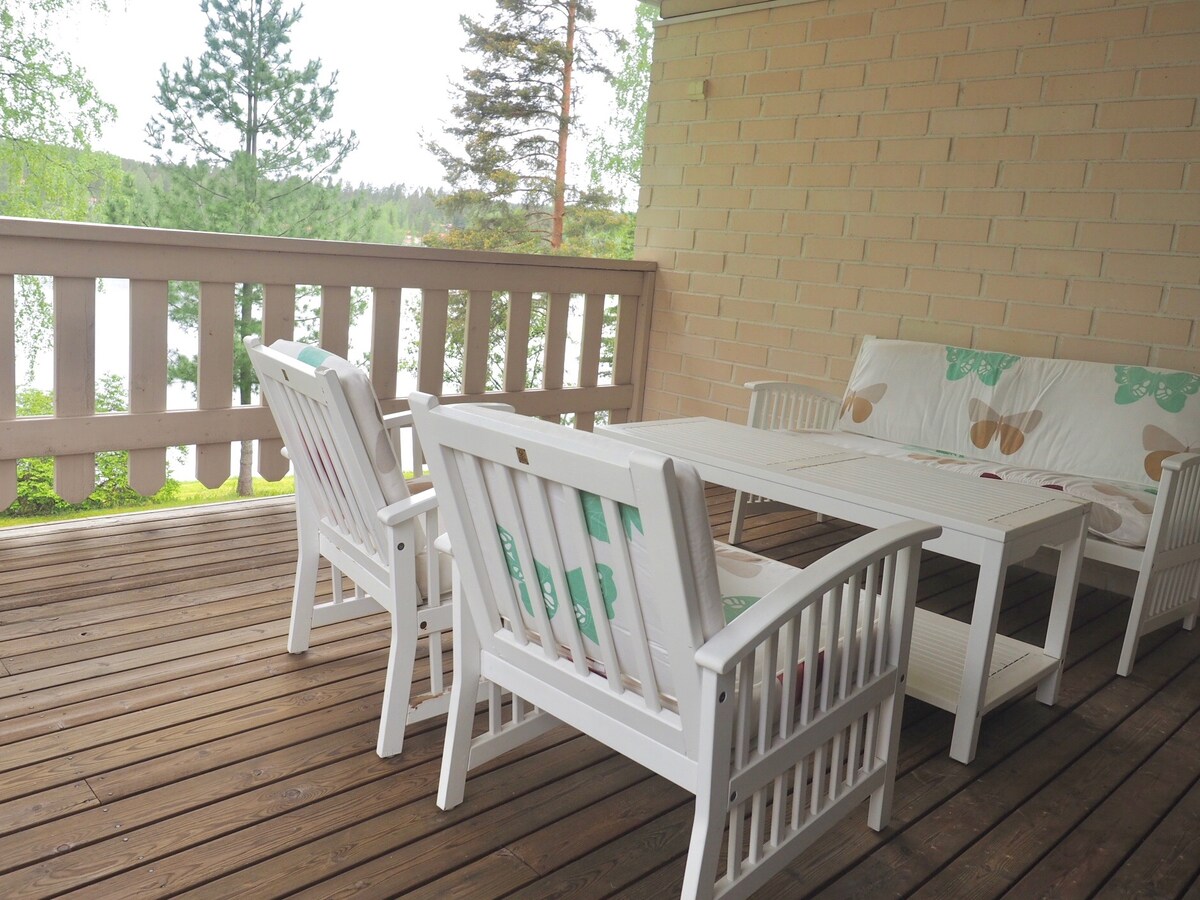 Luminoso y limpio apartamento de dos habitaciones con sauna a orillas del lago Jyväsjärvi. Casa construida en 2019 en la zona de viviendas de la feria a orillas de la playa. Desde el amplio balcón acristalado se abre un paisaje lacustre sin obstáculos en dirección al centro. Playa. Plazas de aparcamiento privado junto a la puerta principal. La zona cuenta con hermosos y variados terrenos para correr y un campo de golf de disco volador. El apartamento está completamente equipado (amplia vajilla, electrodomésticos, capacidad para cuatro personas, televisor inteligente de 65" con servicios de transmisión en directo, bomba de calor de aire, silla colgante, etc.).