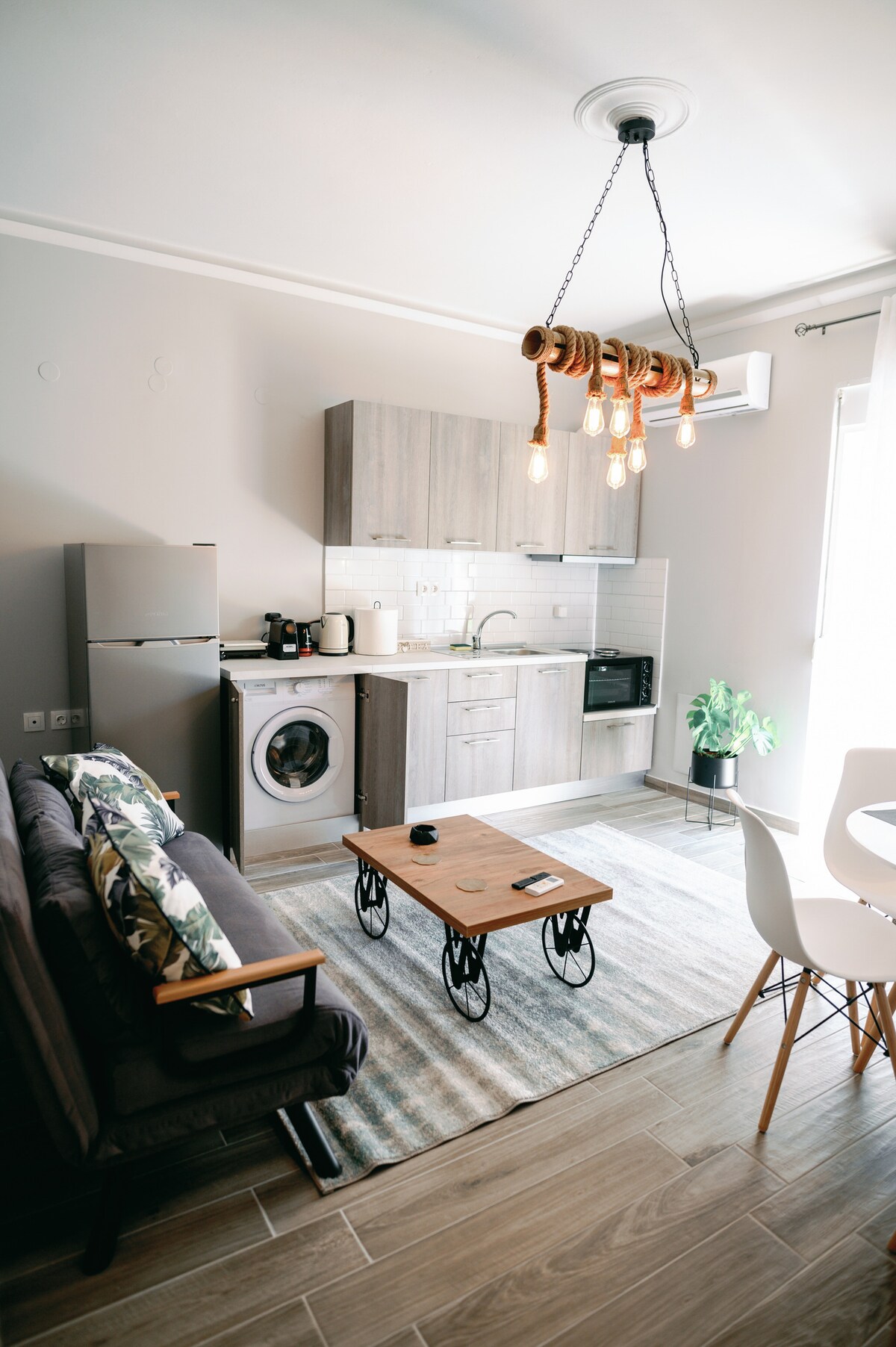Πλήρως ανακαινισμένο διαμέρισμα με φινετσάτη αισθητική σε ένα από τα κεντρικότερα σημεία της πόλης, στον δεύτερο όροφο με πρόσβαση από τις σκάλες. Ευρύχωρο, ζεστό, μοντέρνο, ικανό να σας κλέψει την καρδιά. Αποτελείται από έναν ενιαίο χώρο που περιλαμβάνει σαλόνι-κουζίνα και queen size κρεβάτι με ανατομικό στρώμα αφρού. Ο άριστης ποιότητας καναπές γίνεται κρεβάτι και ο χώρος είναι ικανός να φιλοξενήσει με άνεση 4 άτομα. Σε περίπτωση περισσότερων ατόμων το σπίτι διαθέτει και άλλο υπνοδωμάτιο.