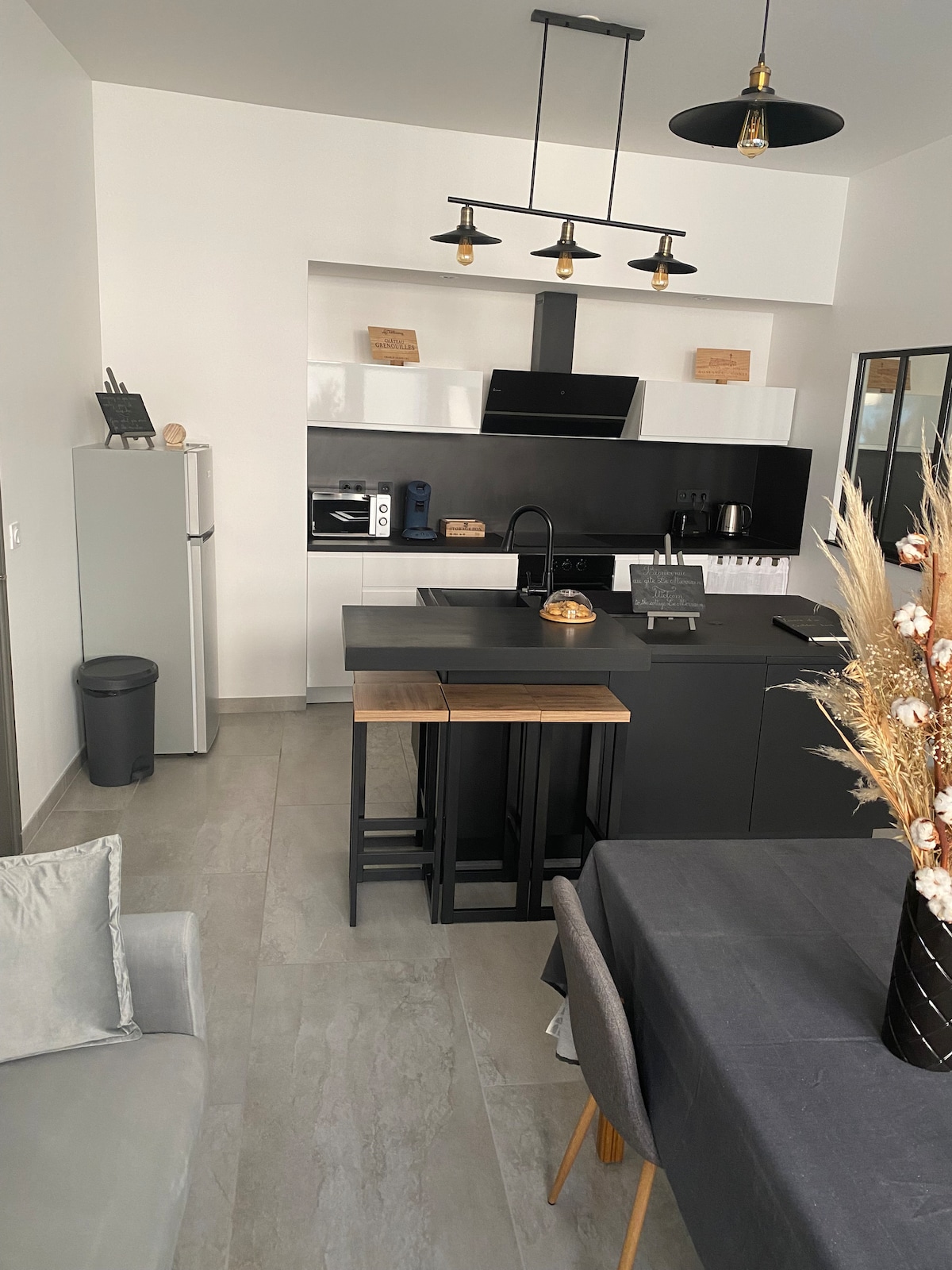 Casa rural situada en la pequeña ciudad de Chablis. Se alojará en un ambiente moderno. Alojamiento que consta de una gran sala de estar con cocina abierta totalmente equipada, un dormitorio con cama doble, un segundo dormitorio con una cama doble y un baño con ducha a ras de suelo e inodoro. Situado a dos pasos de restaurantes, bares, bodegas de degustación y numerosas fincas vinícolas , podrá pasear por todo el pueblo. Wifi gratuito.