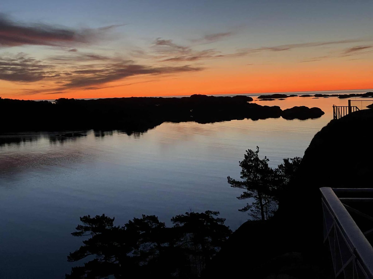 Casa de madera nueva con una vista increíble sobre todo el alquiler de barcos desde Homborøya en el este hasta Justøya al oeste. Casa grande y espaciosa con gran altura de techo en la sala de estar/cocina. Hace sol desde la mañana hasta la noche, y hay muchas oportunidades para sentarse afuera o en las buenas sillas frente a los grandes ventanales. Aquí puedes disfrutar de la tranquilidad y las maravillosas vistas. No hay vecinos. Se encuentra a 500 metros a pie del mar. Posibilidades para alquilar un bote de remos. Excelentes zonas de senderismo.