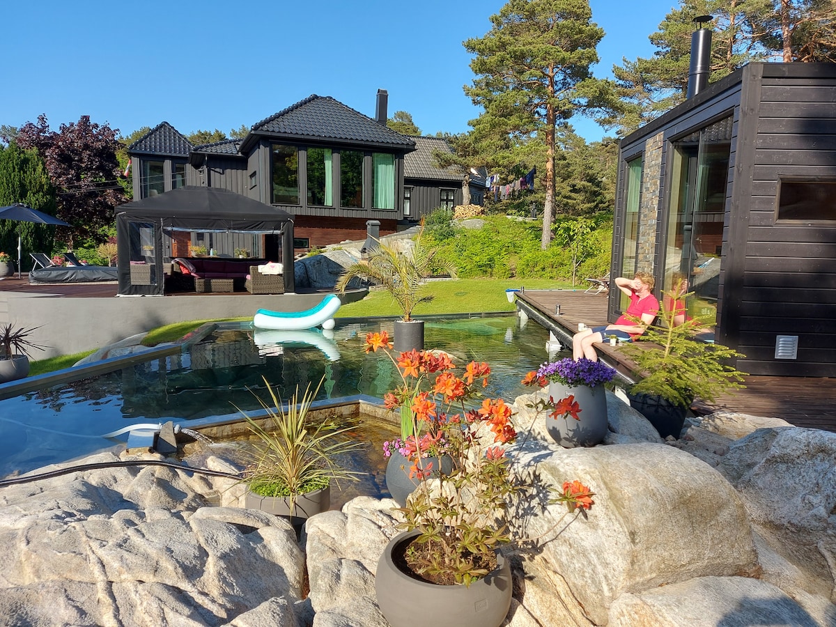 Casa Sørland con piscina y embarcadero
