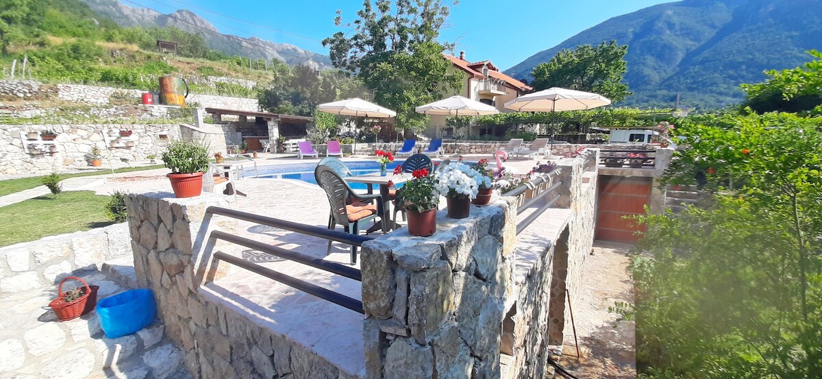 ETHNO HOUSE NBN está ubicada en el pueblo de Limljani, entre el lago Skadar y el mar Adriático. Está a 6 km de la pequeña ciudad de Virpazar , a 12 km de la conocida localidad costera de Sutomore y a 22 km del aeropuerto de Podgorica. La casa tiene cocina,WC y ducha separada,un dormitorio grande con 3 camas con capacidad para 5 personas, porche bebé malo, wifi, piscina al aire libre ( del 1 de junio al 1 de octubre) con muebles de patio con vistas a exuberantes jardines, viñedos y montañas que rodean el pueblo.