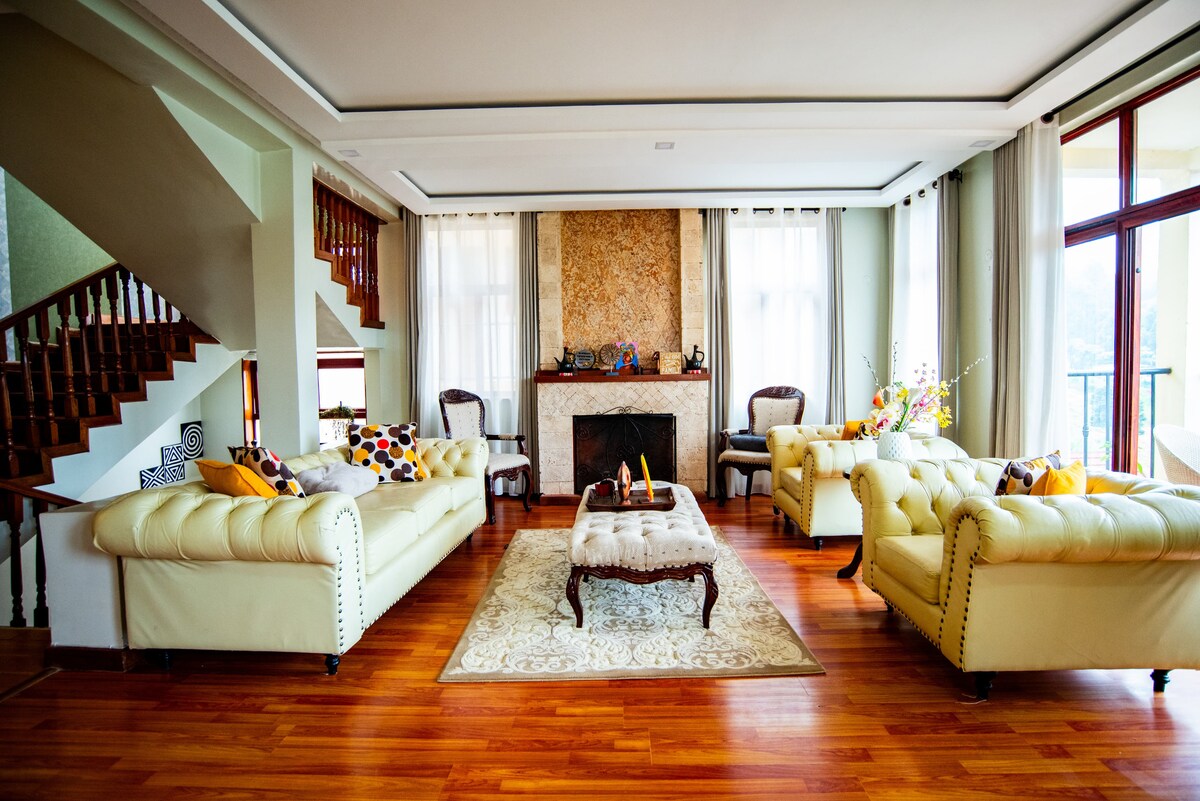 Relax with the whole family at this peaceful unique, spacious, and fully furnished 3-bedroom Villa in Limuru Highlands, which is less than 15 minutes drive to Two Rivers Mall, Village Market, UN Gigiri. Located in a gated community comprising of 32 villas that have a picturesque of tea and flower farms, blending the tranquility of countryside living with convenience of access to Westlands, Airport, Karen and other malls in Nairobi as it is connected to the Southern and Northern by-passes.