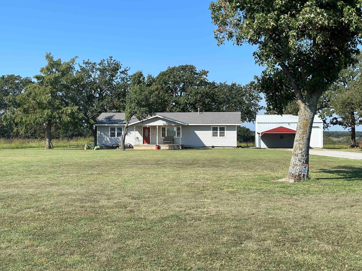 Esta adorable casita de campo está situada entre Tulsa y Oklahoma City. ¡Un lugar acogedor para venir a relajarse y disfrutar de la vida en el campo! El espacio Casa de 3 dormitorios y 2 baños con un espacio de oficina para trabajar si es necesario. Tenemos impresionantes vistas desde la parte delantera y trasera y mucha privacidad. Hay una cocina totalmente equipada con aperitivos y café. ¡Es muy probable que veas vida silvestre durante tu estancia!