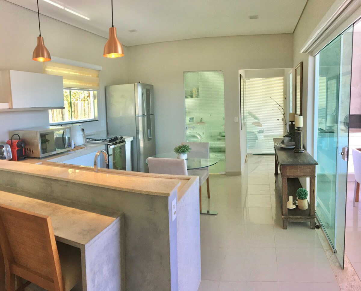 Deliciosa casa de una planta con sala de estar/cocina, dormitorio, dos baños, balcones con dos hamacas disponibles y un gran patio trasero donde se puede hacer una barbacoa, disfrutar de nuestra ducha, respirar aire fresco, estacionar fácilmente tres vehículos y disfrutar de una hermosa vista a las montañas. Casa ubicada en zona urbana. Estamos a 4 minutos del parque acuático Thermas Hot World, a 6 minutos del centro de Águas de Lindóia y a 4 minutos de Monte Sião. Ver más detalles y más información en las descripciones de las fotos...