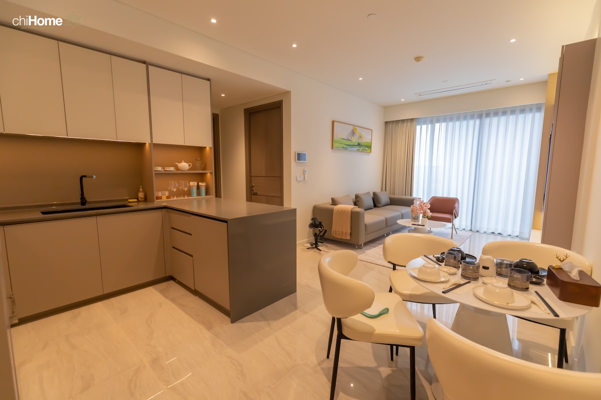 Apartamento de lujo 5* The Opera Residence Corner por ChiHome - River View CBD Distrito 1. La Ópera Metropole Thu Thiem - Torre B, Scala, nivel 1x unidad 11 - Tamaño: 81 m2 (unidad de esquina) - Incluye 2 dormitorios, 2WC, cómodos para alojarse de 2 a 4 personas. - Televisión inteligente de 65 pulgadas con Netflix y YouTube - Sofá, sillón, mesa de té. - Mesa de comedor con 4 sillas. - Utensilios de cocina completos. - Internet inalámbrico de alta velocidad disponible. • Aire acondicionado para toda la casa - Acceso 24/7 al edificio, los 7 días de la semana.