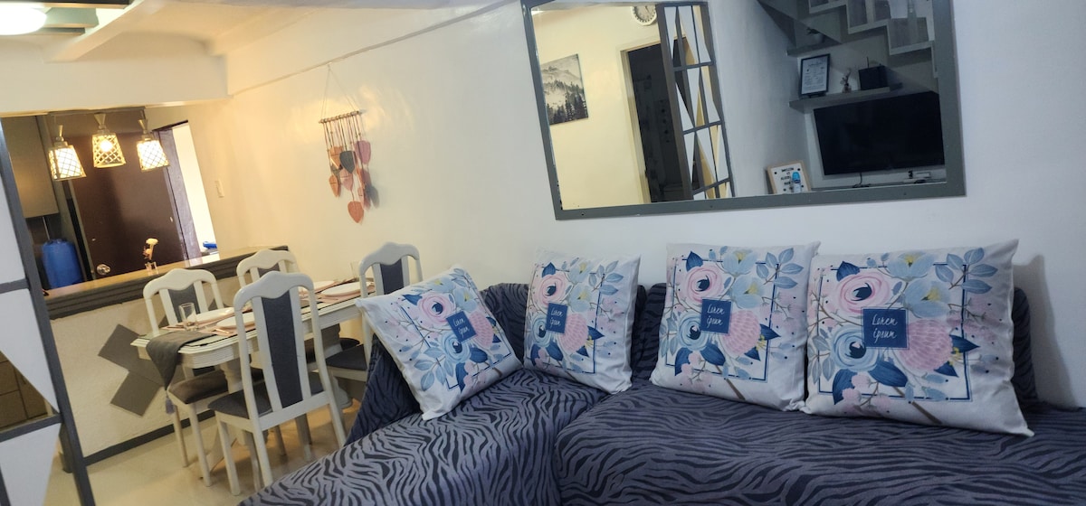 Disfruta de este apartamento de 2 dormitorios a poca distancia a pie del mercado central de Lipa y a un paseo en triciclo de SM. Todo este apartamento del segundo piso incluye wifi de alta velocidad, aparcamiento gratuito, NetFlix, aire acondicionado (solo en 1 dormitorio), 2 televisores inteligentes, cocina completa, cocina de inducción, arrocera, agua potable, zona de lavandería, hervidor eléctrico, platos, artículos de aseo y mucho más. Sin coste adicional por huésped. Ten en cuenta que se trata de una ubicación céntrica, por lo que hay motocicletas y camiones ruidosos que pasan.