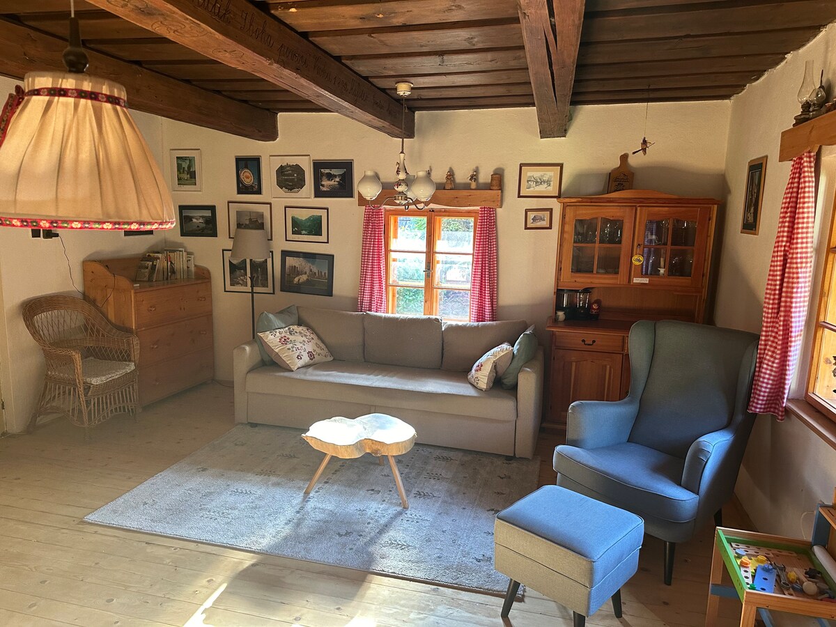 Esta casa de madera de casi 100 años de antigüedad tiene un encanto muy particular y un toque de nostalgia, pero ofrece todas las comodidades modernas que uno necesita. La nueva construcción ofrece una sauna y una gran sala de estar con chimenea para sentirse bien.