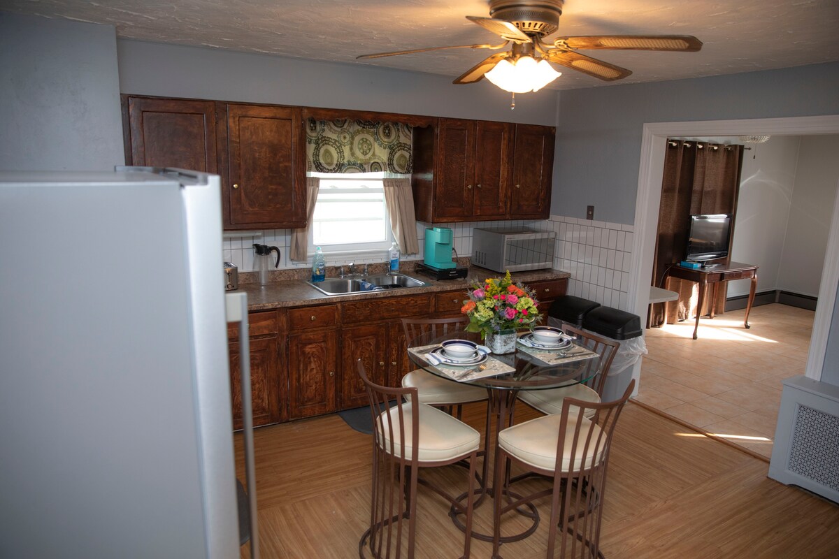 Disfruta de un check-in sin problemas y de un espacio privado de 1000 pies cuadrados en el tercer piso de nuestra histórica casa victoriana. Incluye 2 dormitorios, baño, pasillo abierto y un área combinada de sala/comedor/cocina americana (sin lavabo). Se admiten mascotas, actualizados y cómodos durante todo el año. Se accede a través de la escalera trasera; solo se comparte la entrada/pasillo. El tercer piso y el piso superior son estrictamente para huéspedes. A solo 5 minutos de la I-91 y Pike, a 15 minutos de Northampton y a 15 minutos de Big E.