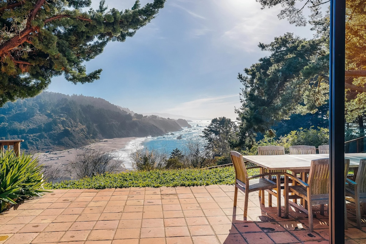 A siete minutos en auto de los restaurantes, playas y tiendas de Mendocino. La casa se encuentra en una propiedad soleada orientada al sur con vistas al mar desde la terraza, así como a todas las habitaciones de la casa. La cocina totalmente equipada y la amplia sala de estar separan las grandes suites del dormitorio principal, cada una tiene su propio baño. Calefacción central, TV inteligente de alta definición, HomePod, lavadora/secadora, Internet de alta velocidad, lujosa cama tamaño king. Una bañera de hidromasaje para ocho personas, sauna personalizada, ducha de agua caliente y una torre de agua de descarga fría están en el patio trasero.