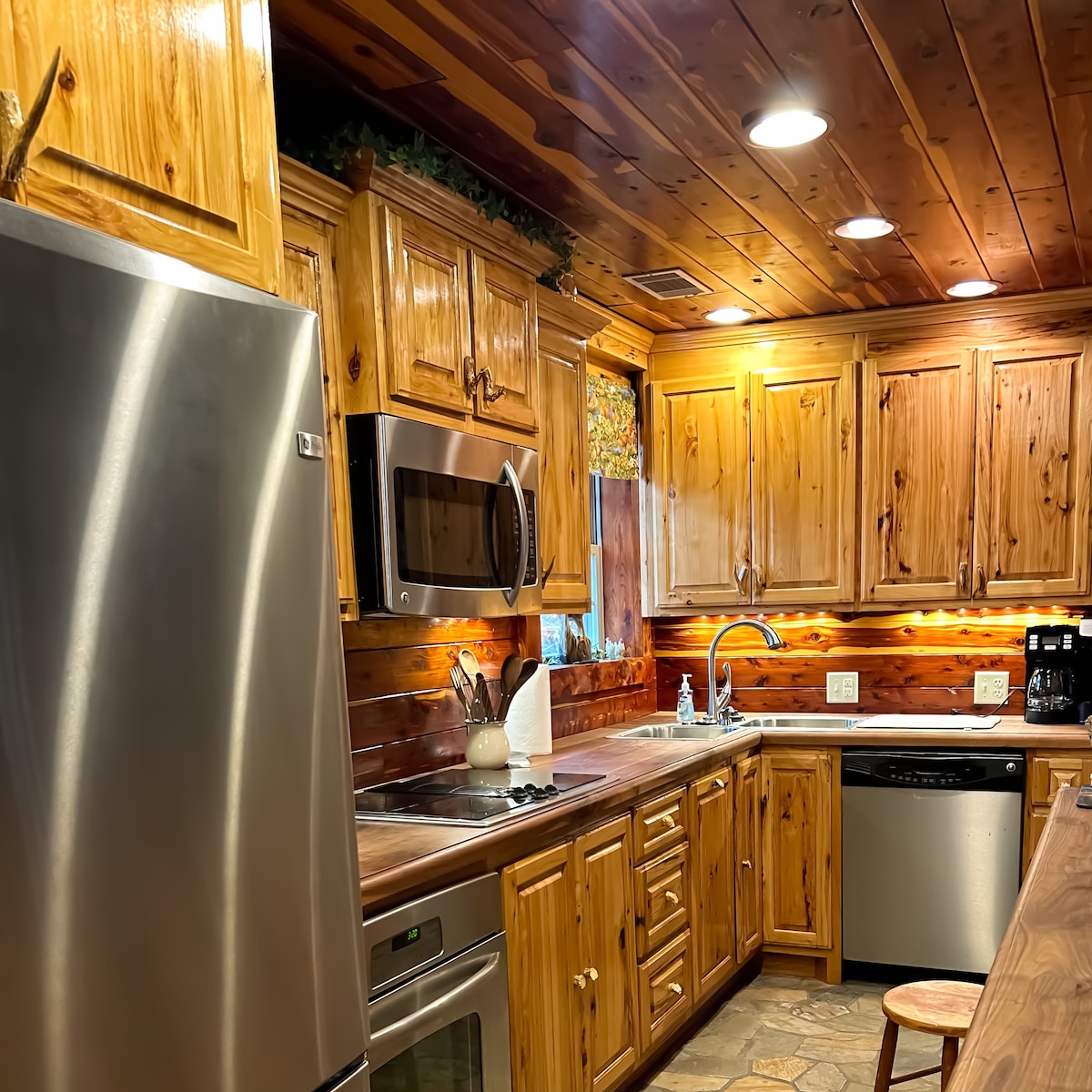 ¿Buscas la cabaña de un trampero? ¡No busques más allá de nuestra versión de lujo de esta tradición icónica! Esta es una cabaña de 2 dormitorios y 1 baño con mucha personalidad. Pero no tendrás que poner una línea de trampas ni buscar comida para disfrutar de estas características personalizadas: - Una hermosa chimenea de piedra con un espacioso hogar que domina el 1er y 2do piso de la cabaña de 800 pies cuadrados. - 2 camas tamaño queen; 1 en el dormitorio principal y 1 en el loft de 7 pies con techo abovedado - Ducha a ras de suelo de alta presión con 2 regaderas.