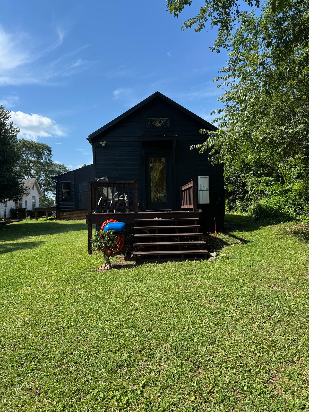 Pequeña ampliación de nuestra casa para huéspedes y familiares de fuera de la ciudad. Entrada privada y no está conectada al resto de la casa desde el interior, pero encima de la habitación está el dormitorio de nuestros hijos. Cuenta con una pequeña zona de cocina con hervidor de agua, microondas y nevera (sin congelador). Hay un pequeño baño con ducha y una cama tamaño queen, todo en 160 pies cuadrados, por lo que es un espacio muy pequeño y estrecho :) Hay una pequeña zona de porche para pasar el rato. Estamos fuera de lo común en el bosque. A 12 minutos de Callaway, justo al lado de la salida 30, 32 de la 185.