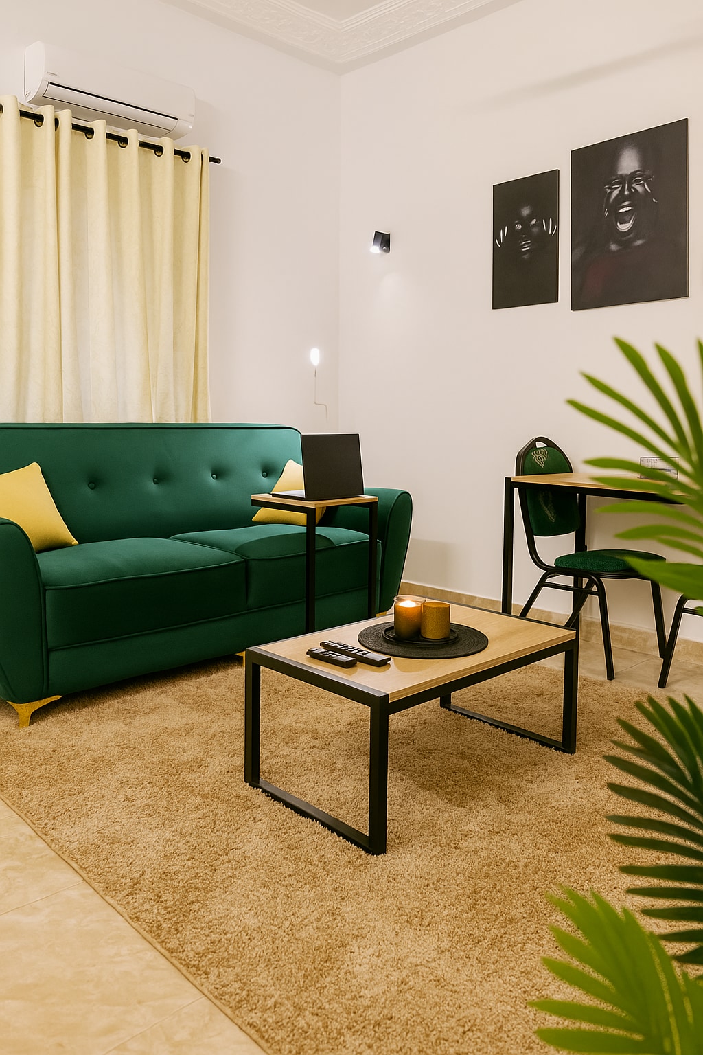 Experience a sejour in a contemporary apartment in the heart of Agla Cotonou. Situated a 10mn drive to the National Stadium a 15mn to Obama Beach and 20mn to the airport a private entrance for your convenience. Whether you're a group of friends or a family cherish your time in Cotonou with us. Centrally located to ensure effortless access to all that the city has to offer. Seize the opportunity to create unforgettable memories as you explore the cultural delights of this enchanting destination.