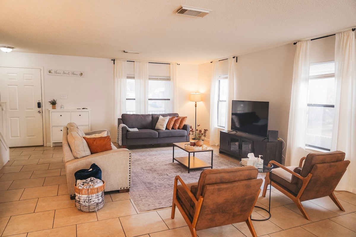 Escape to our stylish, newly renovated Universal City condo! This peaceful retreat comfortably fits families and groups. Features a private hydrotherapy spa hot tub, a fully equipped kitchen, and a dedicated workspace. Enjoy modern comforts and a cozy feel just minutes from Randolph AFB, restaurants, and shopping. Perfect for a relaxing getaway or a productive work-from-home stay.