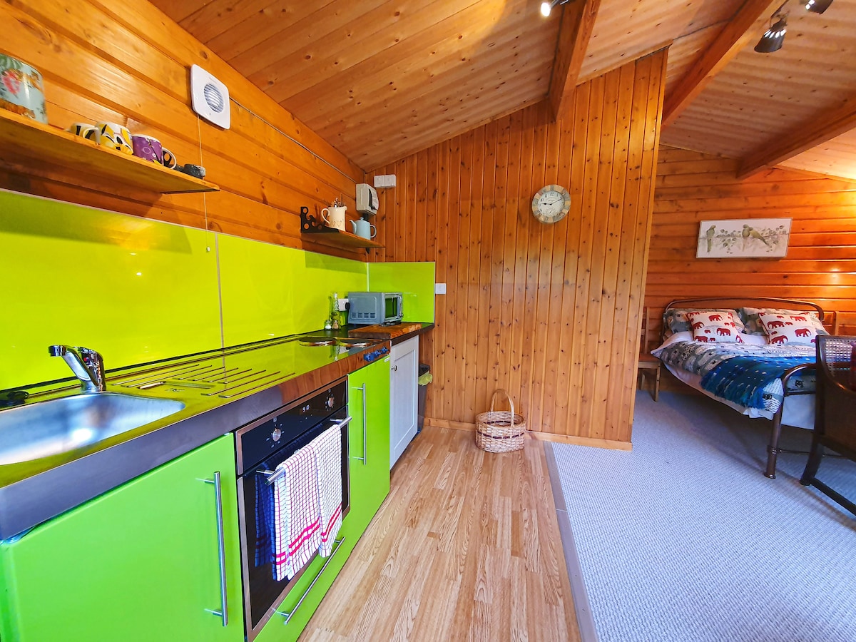 La cabaña de madera es un encantador apartamento independiente situado entre la impresionante belleza del Parque Nacional de Brecon Beacons, una reserva internacional de cielo oscuro. Ubicado dentro de los amplios jardines de Pen-y-Bryn Guest House, el alojamiento tiene vistas a un estanque natural con las cercanas montañas Black como telón de fondo. Un acogedor refugio rural, la cabaña de madera ofrece la ubicación perfecta para relajarse y descansar, o como base para explorar las muchas actividades que ofrece la zona.