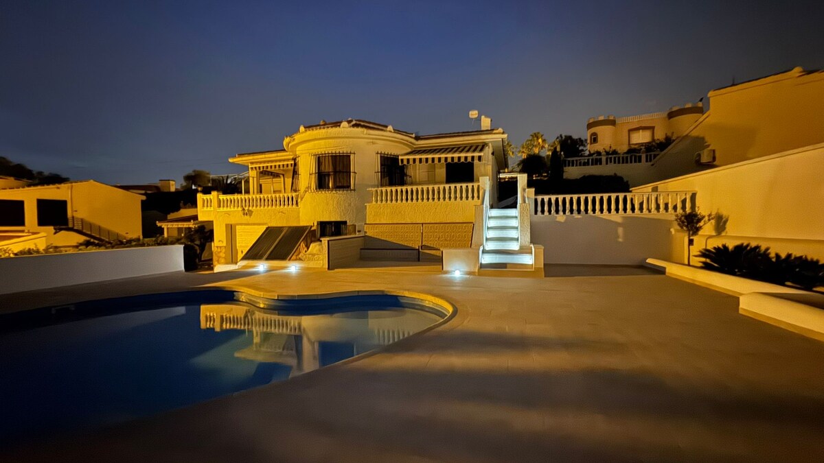 Golf, playa, bares, restaurantes, gran ciudad o relajación tranquila. Trae a tu familia o amigos y disfruta de este elegante lugar para hospedarte. La nueva villa de lujo tiene una variedad de servicios. Jardín privado y zona de piscina con varias áreas de estar, tumbonas y barbacoa, perfectas para relajarse al aire libre. Puedes divertirte en tres pisos con una gran terraza en la azotea donde puedes disfrutar de la vista de la ciudad y hacia el mar. Aire acondicionado e internet rápido. Ofrecemos 3 camas dobles de 160*200 y 4 camas individuales de 90*200.