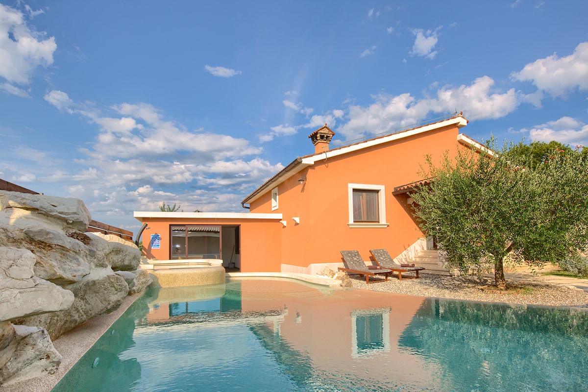 La villa es una villa moderna y nueva en una ubicación tranquila y privada, pero no muy lejos del mar a 8 km y de la ciudad de Pula a 7 km de distancia. La gran piscina privada y climatizada con una cascada y un bar en la piscina es un lujo puro. Costo adicional para la piscina climatizada 300 euros por semana. En la terraza de comedor cubierta puedes asar tus especialidades que puedes preparar en la cocina de verano en la parrilla.