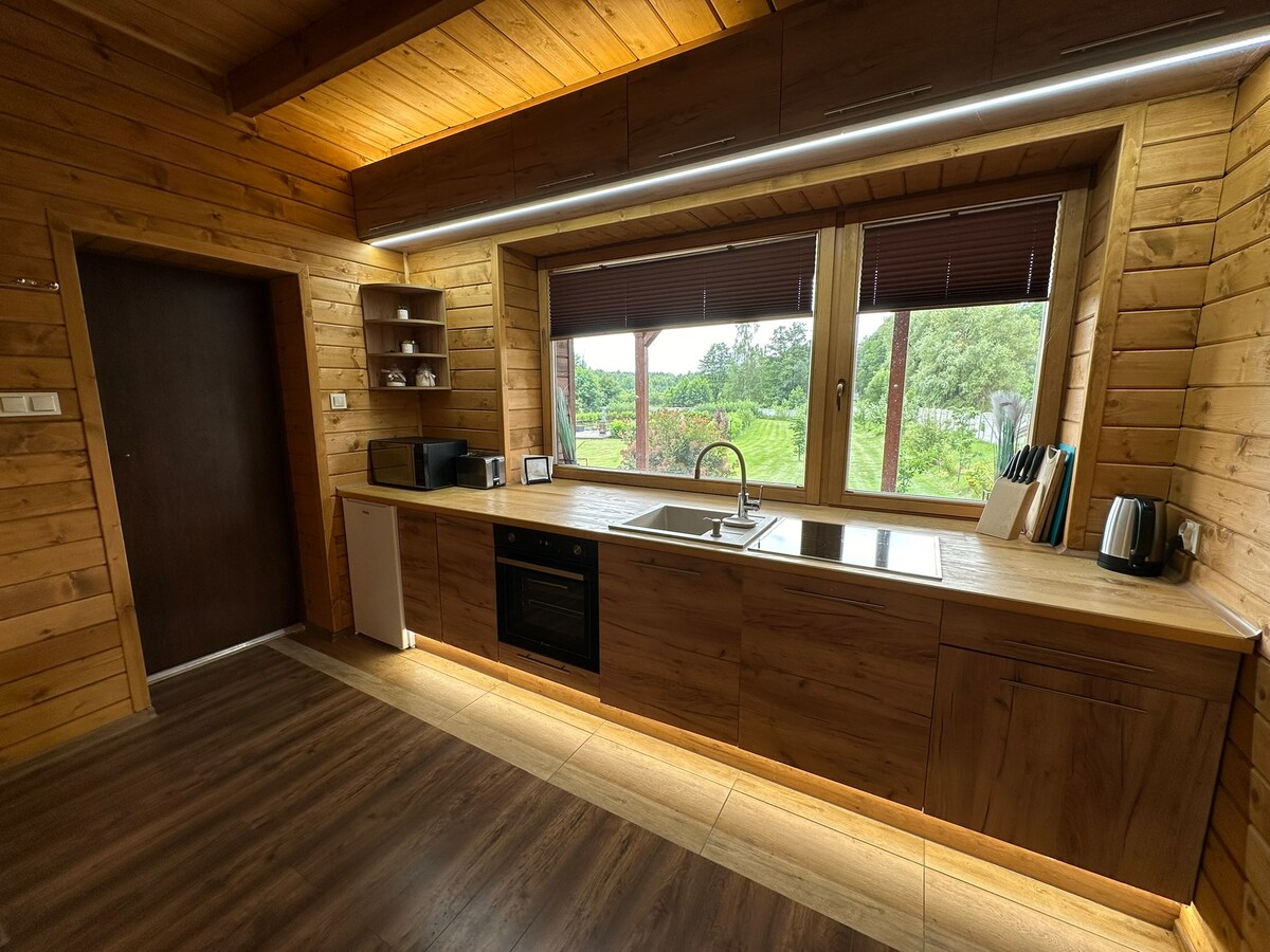 ¡Hola!🌲 Descansa de la vida cotidiana en una nueva casa de campo en el bosque junto al lago. El granero está destinado a 4-6 personas: hay dos dormitorios y un sofá cama. La casa tiene una cocina bien equipada, un baño con calefacción por suelo radiante, un salón con vistas al bosque, un televisor grande y conexión a Internet de alta velocidad. Una ventaja adicional es la gran red sobre el espacio del salón para relajarse. Además de los hermosos alrededores, tenemos hasta 11 zonas de actividades, es decir, atracciones en las que todos encontrarán algo para sí mismos.