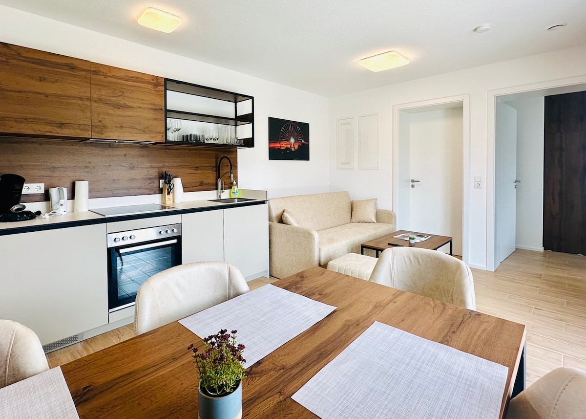 Elegante apartamento en la Selva Negra: vida moderna en el corazón de la naturaleza ¡Te damos la bienvenida a nuestro encantador apartamento nuevo a nivel del suelo (35 m²) que ha estado disponible para los huéspedes desde 2024! El alojamiento moderno y elegantemente amueblado cuenta con todo lo que necesitas para una estancia relajante. Ubicación: Nuestro apartamento se encuentra justo en el centro del pueblo, a solo unos pasos del parque termal. Una tienda de comestibles y la estación de tren también están a poca distancia a pie.