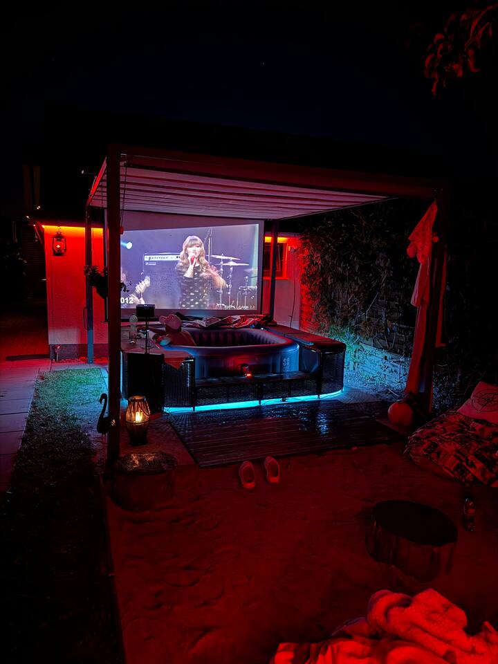 A través de la terraza se accede al pabellón. En el interior hay una sala de estar con una cocina americana. También hay una placa de inducción de 4 fuegos, horno y lavavajillas, así como hervidor de agua, cafetera y microondas. El sofá tiene una función de dormir y la Smart TV de 49 ". Desde el dormitorio independiente se accede al baño con ducha y WC. La cama con somier es de 1,80 m de ancho.