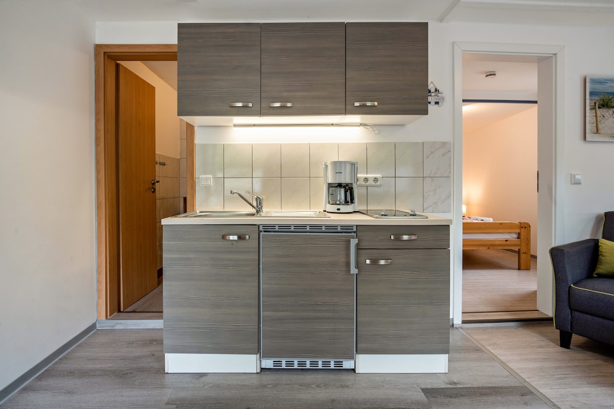 Herzlich willkommen in unserer kleinen Wohnung in Wolgast! Stilvolles Design und nur 10 Minuten vom Strand entfernt bieten die ideale Basis für erholsame Tage. Schlafzimmerbereich, Küchenzeile und eine gemütliche Terrasse lassen keine Wünsche offen. Optional erhältlich: Strandkörbe für sonnige Stunden, Elektroscooter für flexible Erkundungen und Whirlpool (ab 20. Mai) für entspannte Abende. Dein Urlaub, deine Wahl! Genieße die entspannte Atmosphäre von Usedom und erlebe unvergessliche Momente.