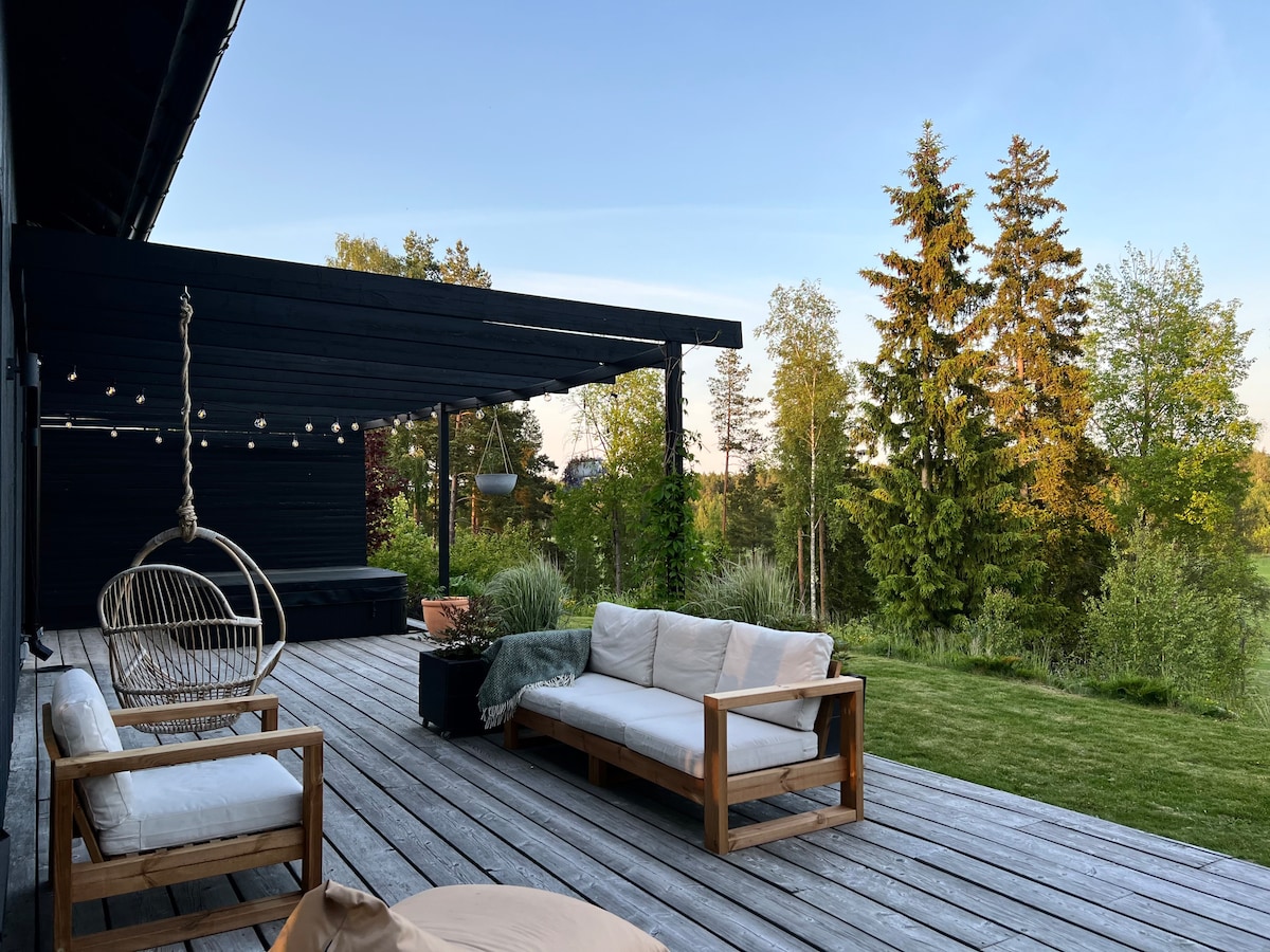 Villa Metsälampi es muy privada con patio propio y alrededores vallados. Cabaña de madera y tiene terraza bic y parrilla bien equipada y amplia piscina. Durante el verano también tenemos una pequeña cabaña afuera con capacidad para 2 personas adicionales. La cabaña tiene sauna y ducha a poca distancia de la piscina. La piscina está cerrada hasta la primavera de 2026 Solo se permite fumar en la zona exterior designada.