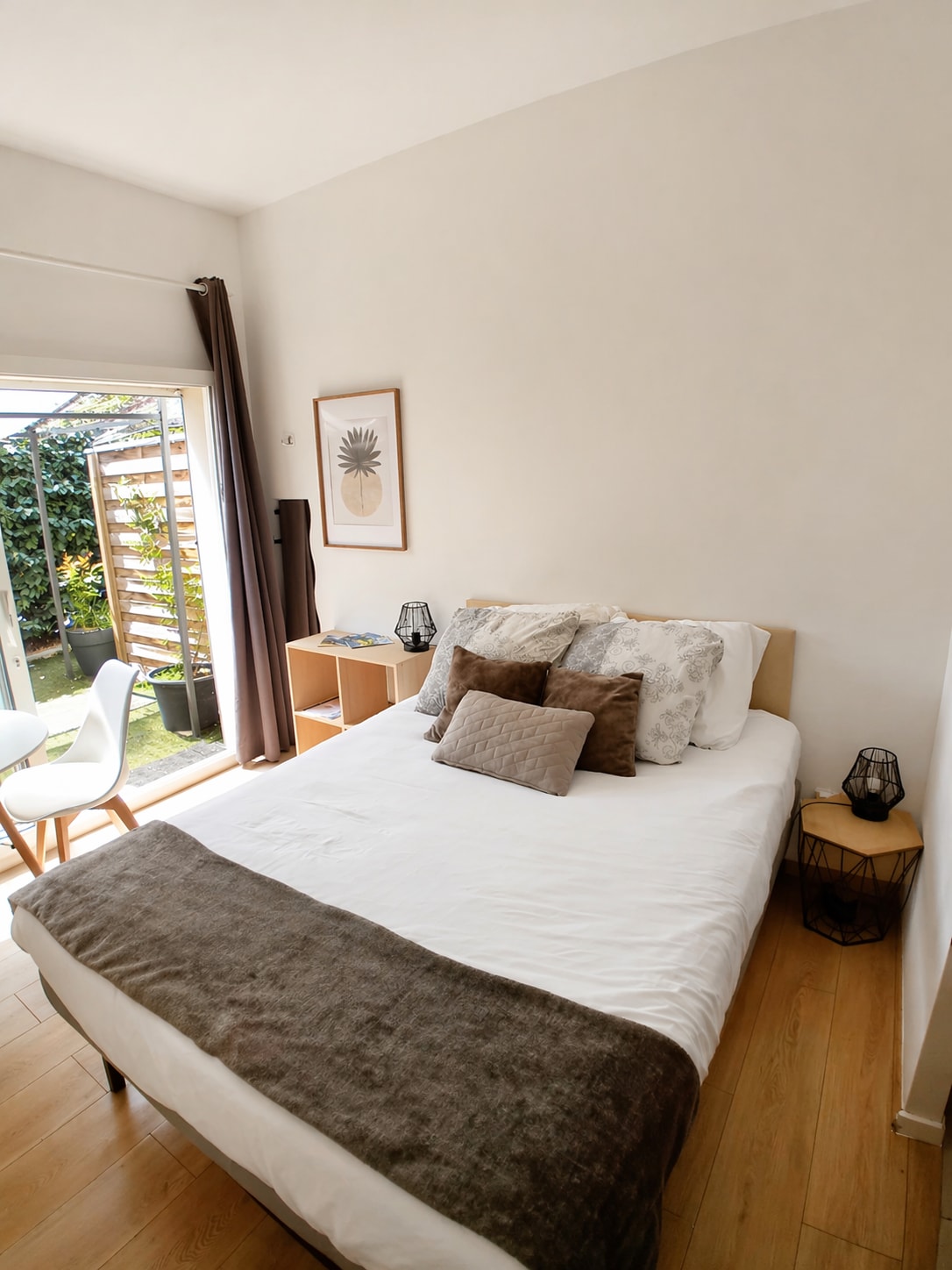 Bagnols, pueblo del Beaujolais, para una o más noches, en una zona tranquila, le damos la bienvenida a un estudio independiente de 25 m², que consta de 1 cama doble, si es necesario 1 cuna. Un cuarto de baño completo con ducha, para su bienestar, un microondas, una cafetera y un hervidor de agua, están a su disposición. Para el desayuno se proporciona café, té y fruta fresca. Plazas de aparcamiento en frente de la casa. Situado a 30 km del centro de Lyon Estudio completamente renovado en agosto de 2024.