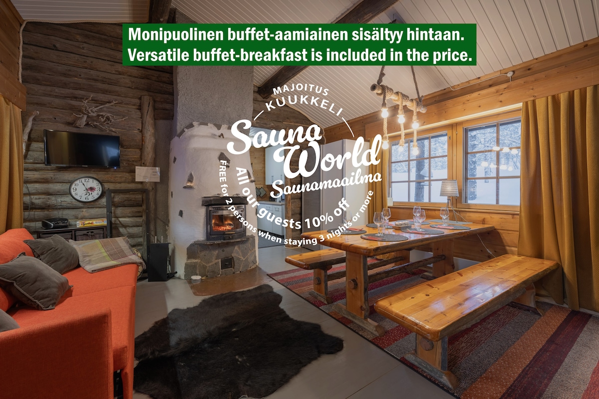 Gold Legend Paukkula #1 Apartments Saariselkä on uusi edullisesti hinnoiteltu majoituskohde Saariselällä. Paukkula #1 on neljän asunnon rivitalon parvellinen päätyasunto omalla saunalla. Asunnossa on hyvin varusteltu keittiö, olohuone jossa 50" smart-TV sekä tunnelmallinen avotakka ja mukava vuodekulmasohva. Parvella on yksi 160cm parivuode sekä kaksi yhden hengen vuodetta. Parvitilan voi rajata verholla kahdeksi makuuhuoneeksi. Asunnossa on oma sisäänkäynti, kaksi ulkovarastoa sekä terassi.