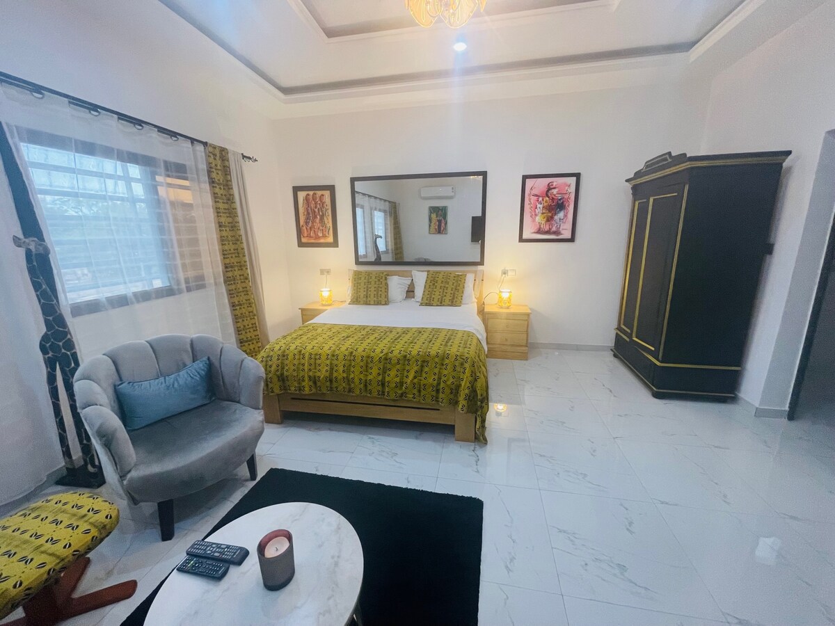 🌟Moderno apartamento estudio con aire acondicionado en la mejor ubicación🌟 Te damos la bienvenida a nuestro bien cuidado hotel de apartamentos en el popular distrito de Nukafu, ubicado en el centro + generador de respaldo. Nuestro alojamiento te ofrece: Muebles acogedores con cocina, TV, nevera, microondas y cafetera Wifi gratis en todas partes A solo 10 minutos del aeropuerto, el centro de la ciudad y la playa. Edificio seguro las 24 horas, los 7 días de la semana, por tu seguridad