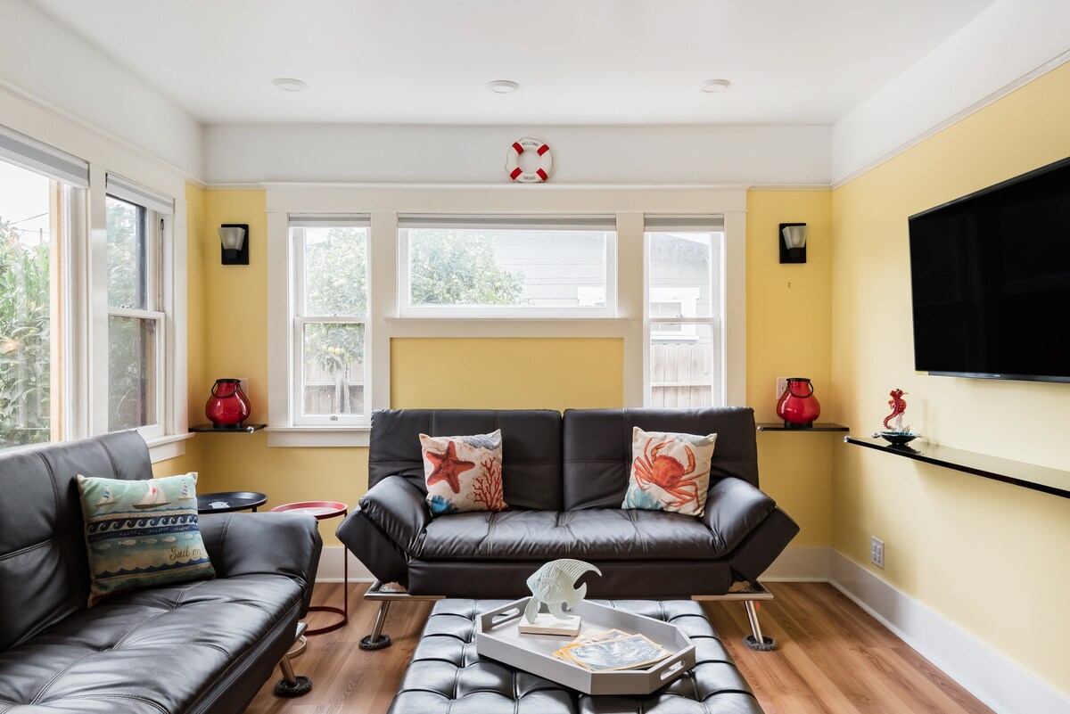 Relájate en un alojamiento de temática náutica y apto para niños en el estacionamiento del jardín >Cocina totalmente equipada. >A poca distancia a pie de diversos restaurantes locales y tiendas lindas >1 milla a la playa > Reci. Equipado en el patio para todas las cabañas + equipo para excursiones al mar. > Asiento elevador, cochecito, corralito para los más pequeños. > Impresora de Internet fuerte y prestada por trabajo. > Lavadora y secadora gratuitas >1 espacio de estacionamiento con carga para vehículos eléctricos de nivel 2 >Bienvenidos a todas las razas, religiones, nacionalidades y orientaciones sexuales