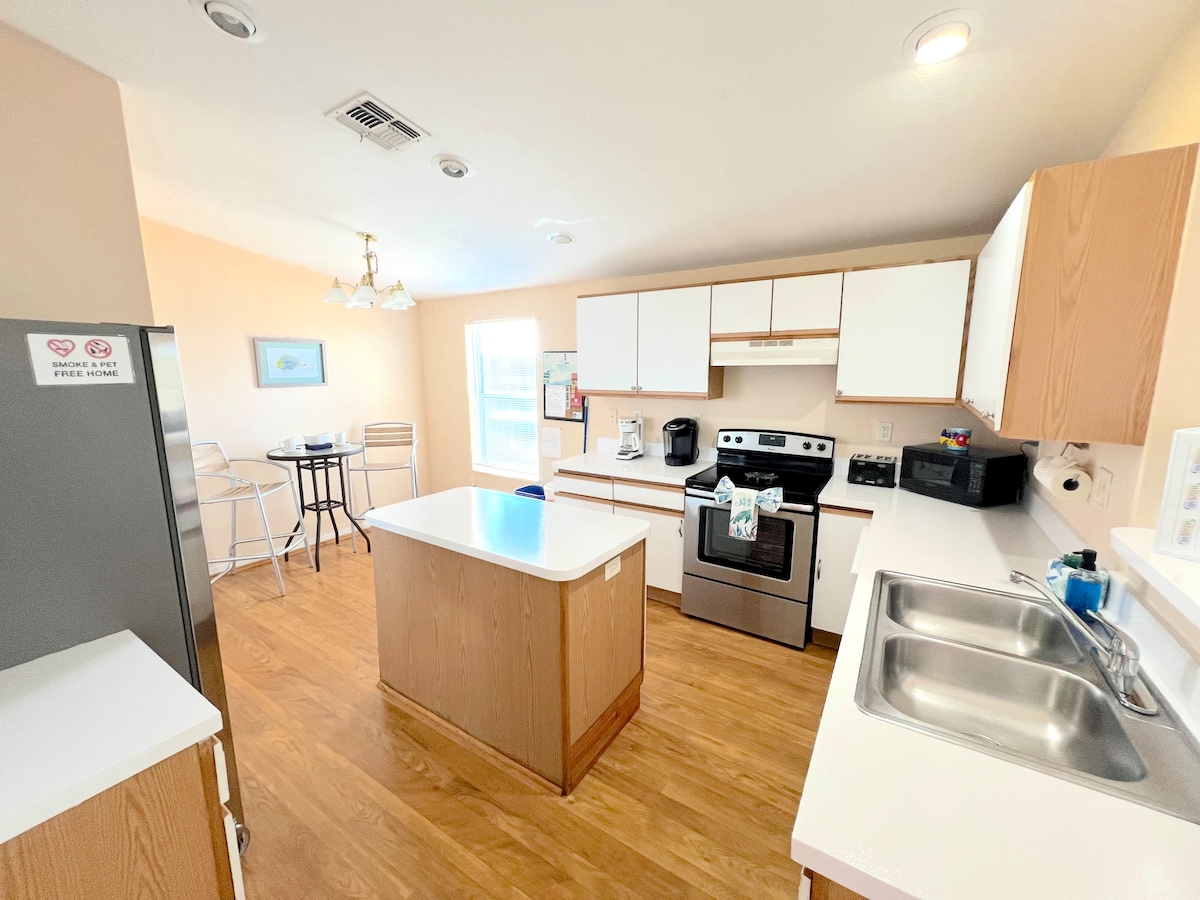¡Bienvenido al PARAÍSO! — perfecto para familias saladas, amantes de la pesca y amantes de la playa • Ubicación privilegiada: en Key Colony Beach con acceso a la piscina y playa privada de Cabana Club • Camina hasta el comedor: a solo unos pasos de Sparky's Landing & Island Company. • Paraíso de los navegantes: muelle en el patio trasero para barcos de hasta 30 pies. • Cocina espaciosa: diseño de estilo familiar con barra para 4 personas. • Comedor Boho: perfecto para cenas acogedoras y entretenimiento. • Las comodidades incluyen lavadora y secadora, cocina totalmente equipada, acogedora sala de TV.