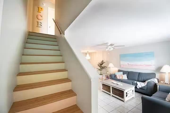 Esta casa adosada reformada está a 4 minutos a pie de la playa y tiene capacidad para seis adultos sin que nadie tenga que dormir en la sala de estar. El baño ofrece una experiencia de ducha increíble y puedes lavar fácilmente toda la arena y el agua salada después de pasar todo el día en la playa. Está en el corazón de PCB, con una tienda de comestibles local a menos de media milla de distancia. Esta casa adosada tiene todo lo que necesitas para disfrutar de un día de playa, incluyendo nevera, 4 sillas de playa, 2 sombrillas y juguetes de arena.