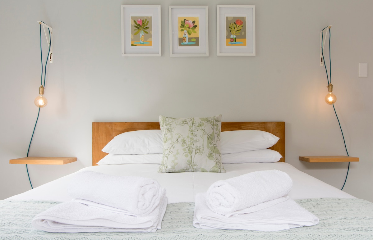 Stay in the heart of Constantia, Cape Town’s famed wine area when you book this newly built, modern cottage. Within five minute’s drive of the gorgeous historical wine route & just a 25 minute drive to the beautiful Atlantic Seaboard beaches or quaint little Kalk Bay. Feel at home & relaxed in our peaceful suburb as the cottage overlooks a picturesque greenbelt trail where you can enjoy a evening walk or sip a glass of local wine on the spacious patio. This property is off the electricity grid.