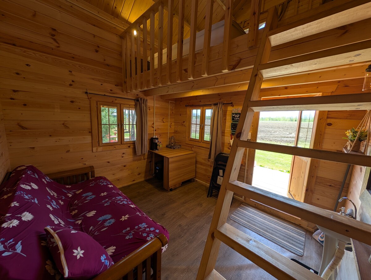 Te invitamos a disfrutar de nuestro hermoso bunkie rústico de madera. Siéntate afuera y disfruta viendo a los animales o contempla las estrellas mientras haces una fogata. Calienta después en el sofá de dos plazas mientras estás frente a la chimenea. El aire acondicionado te mantiene cómodo en verano. Esta cama tamaño queen es fantástica para disfrutar del Wifi gratuito y la TV Firestick. Un gran lugar para una escapada de fin de semana. Golf en Tarandowah, Tamarack y Pineknot a 10 minutos Wave Nordic Spa está a 15 minutos. Puerto Stanley/Puerto Bruce/Puerto Burwell 30-35 min