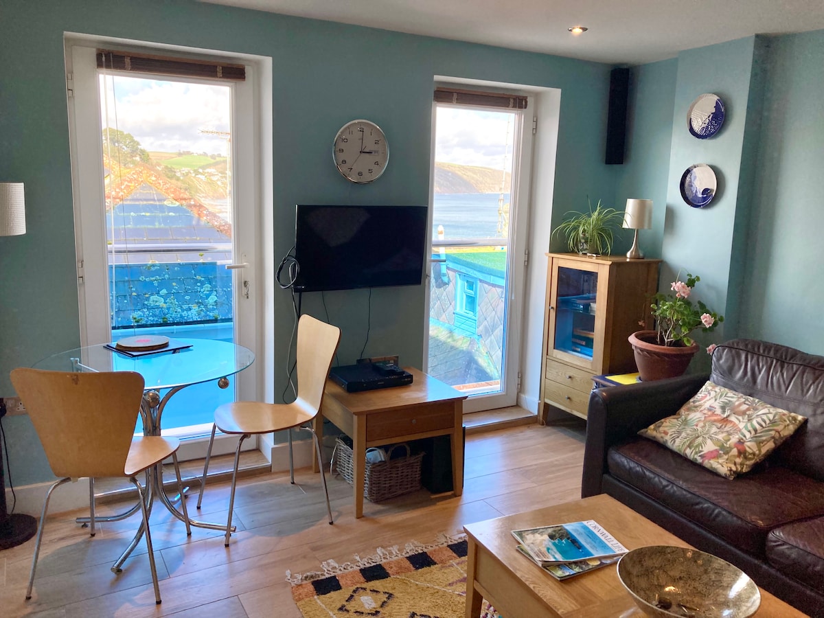 Este elegante y elegante apartamento es de una sola planta. Una base perfecta para una pareja, con o sin hijos. Hay una sala de estar de estilo abierto, con una cocina bien equipada, 2 cómodos sofás (uno es un sofá cama, solo para niños), comedor y hermosas vistas a la playa y al mar. Hay un Smart TV. El dormitorio doble principal tiene amplio espacio de almacenamiento y una ducha y un inodoro en suite. Es un corto paseo panorámico (incluidos los escalones) a las tiendas/playa y el pequeño ferry para llevarte a East Looe.