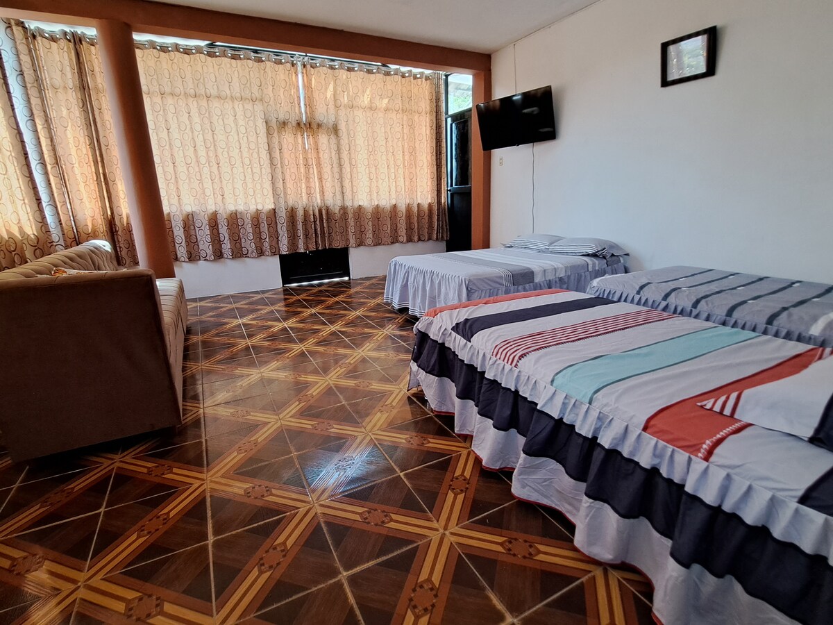 Precioso departamento en el corazón de Tarapoto, hasta 4 personas, dos dormitorios (cama queen y dos plazas) aire acondicionado, agua caliente, departamento equipado, a una cuadra de la plaza.