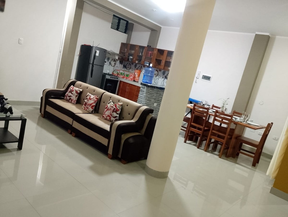 SE EMITE FACTURA Intiyacu Wasi: Departamento en 2do piso con entrada independiente, ubicado en un pasaje tranquilo y privado. Cuenta con terraza, sala, comedor y 2 habitaciones con baño propio, una con aire acondicionado. Acomoda hasta 4 huéspedes. Área de trabajo e internet de alta velocidad, ideal para teletrabajo. A 3 cuadras de la alameda turística de Juanjuí, perfecto para explorar el Parque Nacional del Río Abiseo y la riqueza cultural de la zona.