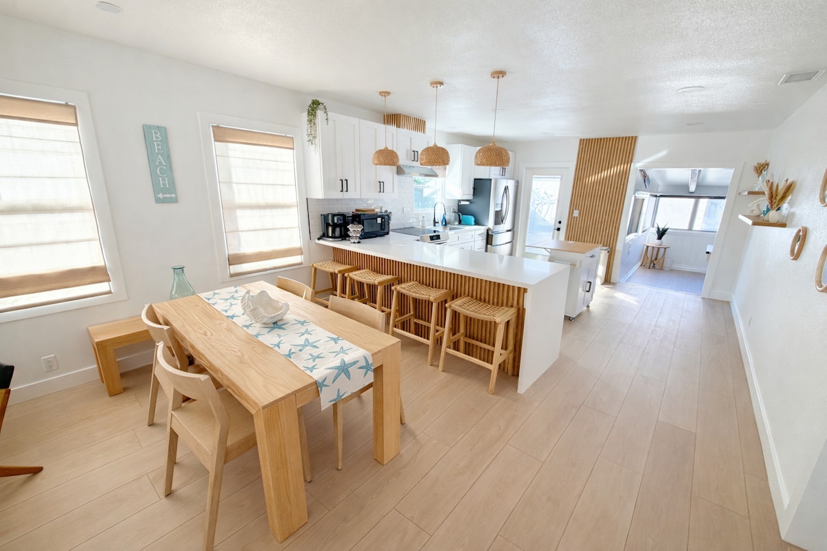 En este magnífico refugio de 2 dormitorios en la encantadora isla de Naples, puedes caminar hasta playas, boutiques, cafés y senderos a lo largo de la bahía. Con acceso al gimnasio cercano incluido en tu estadía (sauna, clases y más) y un patio privado a pocos pasos del agua, este es el alojamiento perfecto para huéspedes con mentalidad de bienestar y trabajadores remotos que buscan un toque de vida relajada en el sur de California.