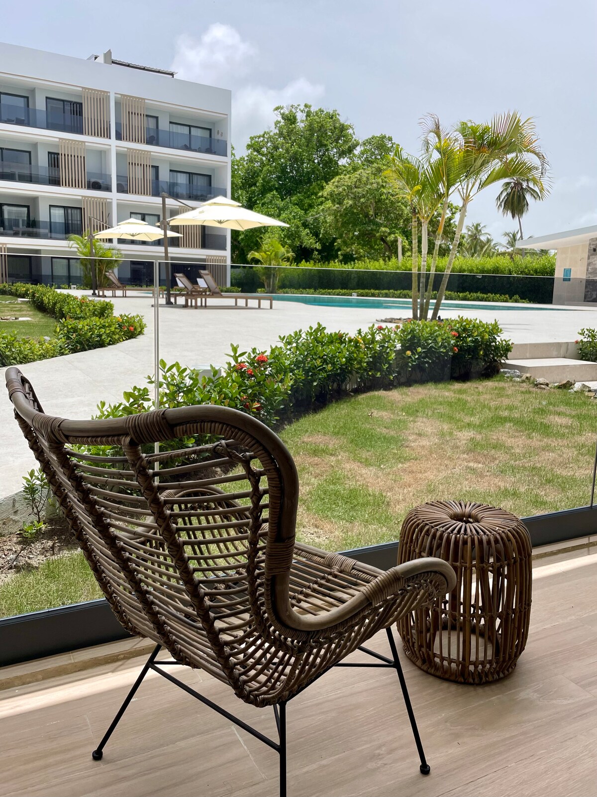 Descubre este elegante apartamento de lujo en Punta Cana con vista a la piscina, ideal para relajarte y disfrutar. Cuenta con dos amplias habitaciones y está ubicado en un residencial con seguridad 24/7, gimnasio, coworking, área de juegos para niños y una piscina semiolímpica. A solo 7 minutos manejando de la playa y 15 minutos del aeropuerto, combina confort, estilo y ubicación perfecta. Vive una experiencia inolvidable rodeado de tranquilidad y amenidades excepcionales.
