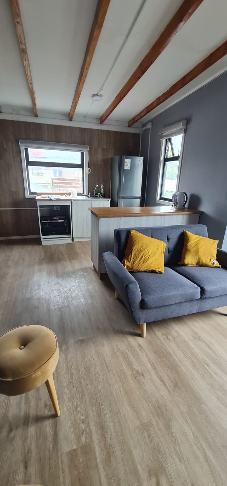 Loft boutique con vista panorámica al lago Llanquihue y los volcanes, ubicado en un entorno natural y tranquilo de Frutillar. Ideal para escapadas en pareja, familia o estadías de trabajo remoto. A solo 5 minutos del Teatro del Lago y la costanera, y a 30 minutos de Puerto Varas. Cuenta con terraza privada para disfrutar amaneceres únicos, parrilla y opción de tinaja al aire libre (con costo adicional). ¡Te esperamos en Ave Lodge! Angela & Francisco.