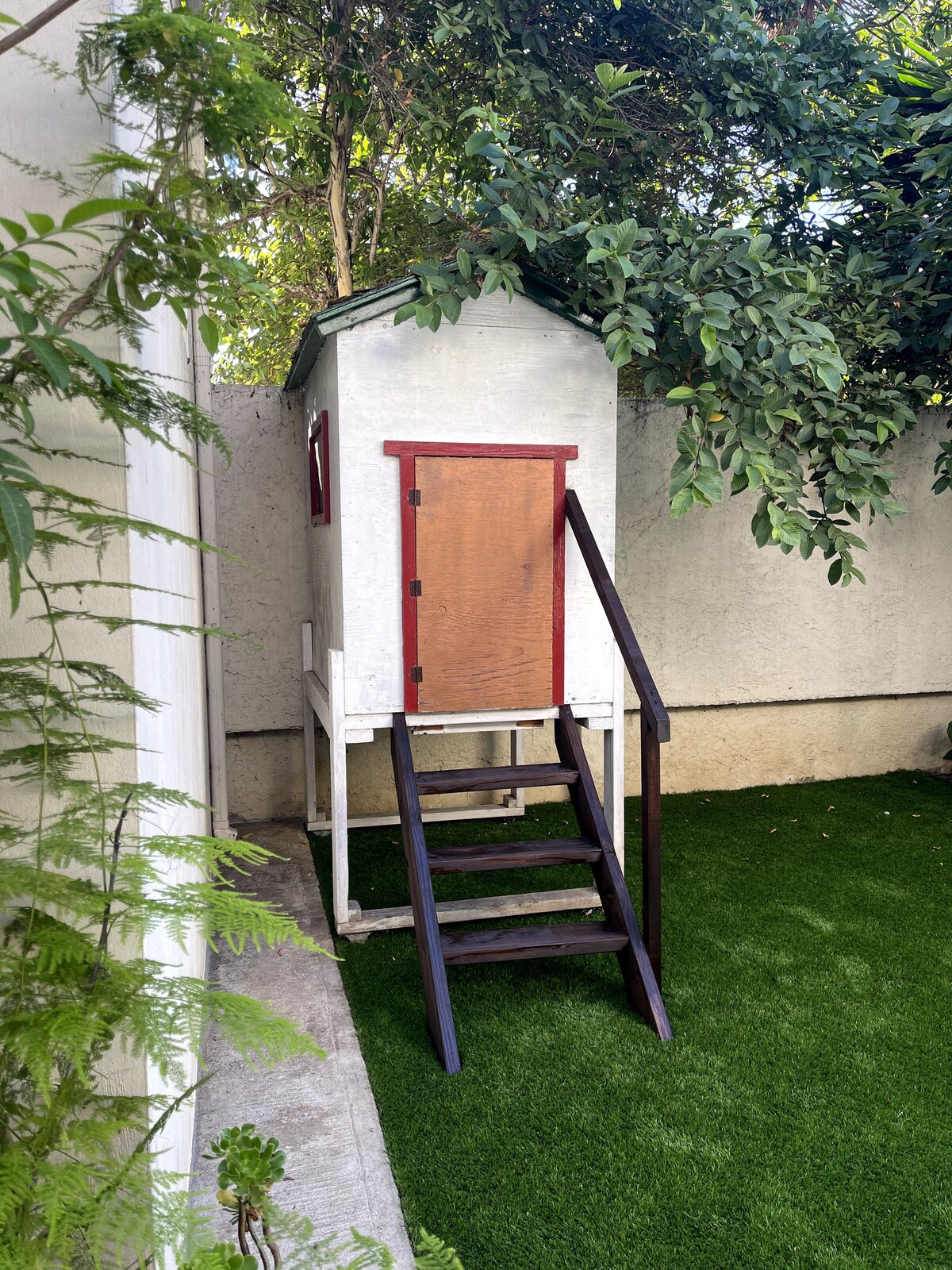 Una experiencia mágica que te tranporta a un ambiente sereno y encantador. La propiedad cuenta con una casa de huéspedes de dos cuartos con una cama king y dos camas queen. Hay dos baños completos y cocina completamente equipada. Aunque forma parte de la casa principal, la propiedad es completamente independiente. También cuenta con jardines y muchas áreas para comer y relajarte. Queda a 10 minutos caminando de la playa y está cerca de mercados, hospitales y cines.