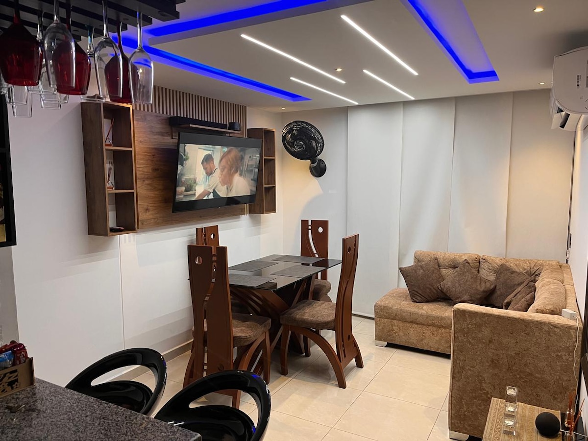 Disfruta de una gran experiencia tecnológica y elegante en este Apartamento inteligente, con una ubicación privilegiada, la cual está rodeada de tiendas éxito, D-1, Dolarcity, Makro, cerca puedes encontrar discotecas, Home Center, Centro Comercial Ventura Plaza Luces inteligentes, sistema Alexa con Amazon Music, cuenta con lavadora, secadora, todos los elementos de cocina y purificador de agua, 188 canales en cada televisor HBO - claro video, 04 Aires acondicionados 03 habitaciones y 01 sala